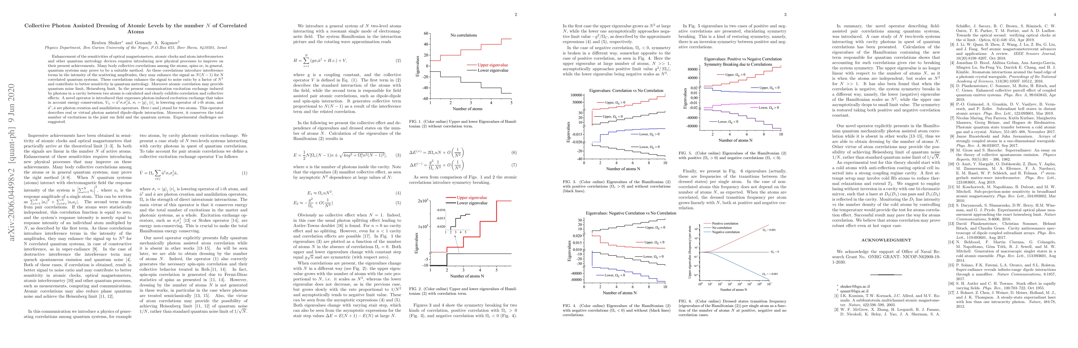 Enhancement of the sensitivities of optical magnetometers, atomic clocks and atom interferometers and other quantum metrology devices requires introducing new physical processes to improve on their present achievements. Many body collective correlations among the atoms, spins or, in general, quantum systems may prove to be a suitable method. As these correlations introduce interference terms in the intensity of the scattering amplitudes, they may enhance the signal as $N(N-1)$ for N correlated quantum systems. These correlations enhance the signal to noise ratio by a factor of $N^2$ and contribute to better sensitivity in quantum metrology. Moreover atomic correlation may provide quantum noise limit, Heisenberg limit. In the present communication excitation exchange induced by photons in a cavity between two atoms is calculated and clearly exhibits correlation and collective effects. A novel operator is introduced that expresses photon-induced excitation exchange that takes in account energy conservation, $V_{ij}=\hat{a}^\dag\sigma_i\sigma_j^\dag\hat{a}$, $\sigma_i=\left|g\right\rangle_{i}\left\langle e\right|_{i}$ is lowering operator of $i$-th atom, and $\hat{a}^\dag,\hat{a}$ are photon creation and annihilation operators. Here $i$ and $j$ stand for two atoms. This operator describes real or virtual photon assisted dipole-dipole interaction. Moreover, it conserves the total number of excitations in the joint em field and the quantum system. Experimental challenges are suggested.