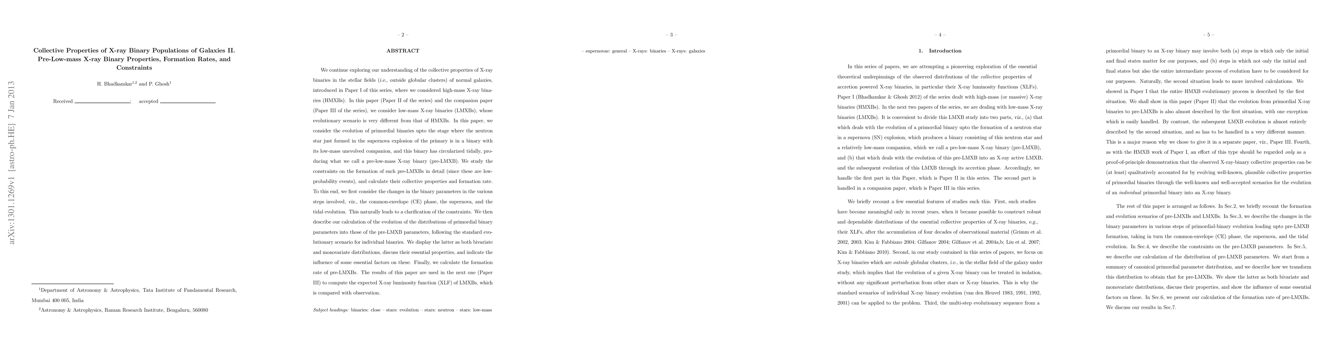 This paper studies the collective properties of low-mass X-ray binaries in galaxies, calculating their formation rates and constraints on their evolution, with implications for understanding X-ray luminosity functions.