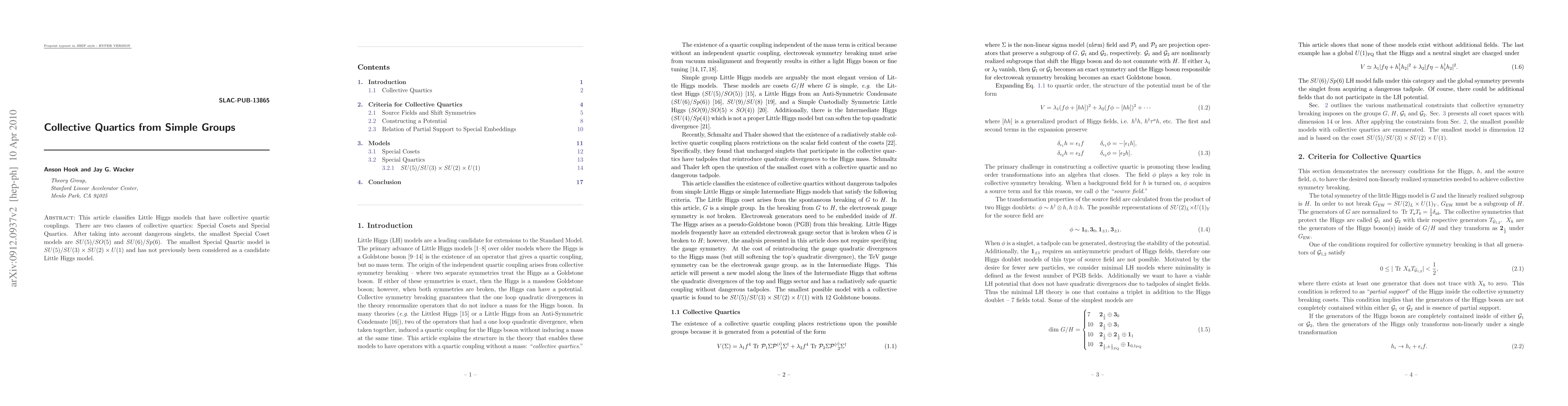 This article classifies Little Higgs models that have collective quartic couplings. There are two classes of collective quartics: Special Cosets and Special Quartics. After taking into account dangerous singlets, the smallest Special Coset models are SU(5)/SO(5) and SU(6)/Sp(6). The smallest Special Quartic model is SU(5)/SU(3) x SU(2) x U(1) and has not previously been considered as a candidate Little Higgs model.