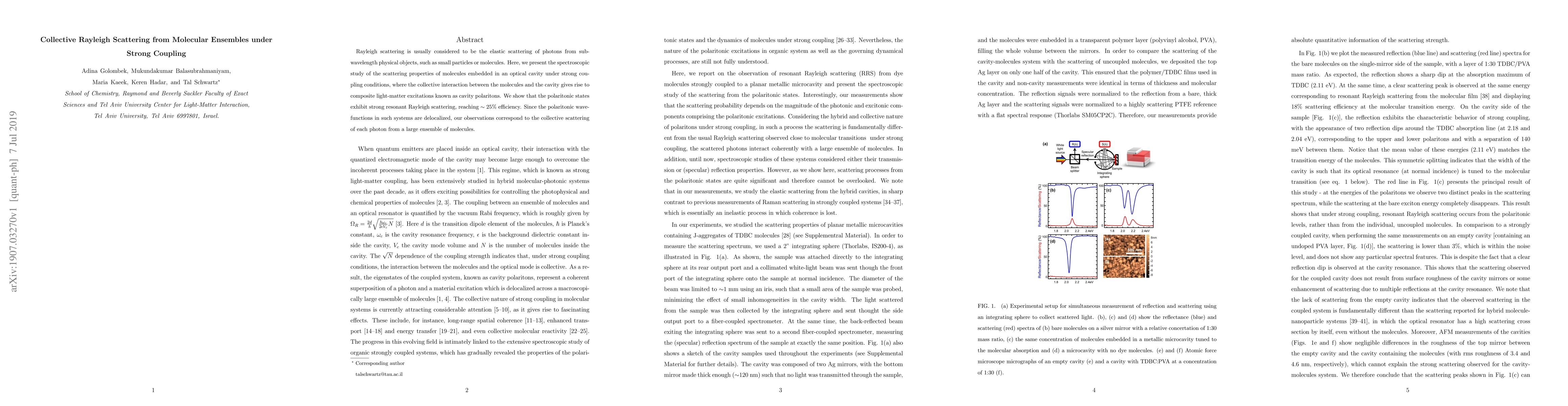 This paper explores the collective Rayleigh scattering of molecules in an optical cavity under strong coupling, revealing that the resultant polaritonic states exhibit resonant scattering efficiency up to 25%, demonstrating the delocalized nature of the polaritonic wavefunctions and the collective scattering from an ensemble of molecules.