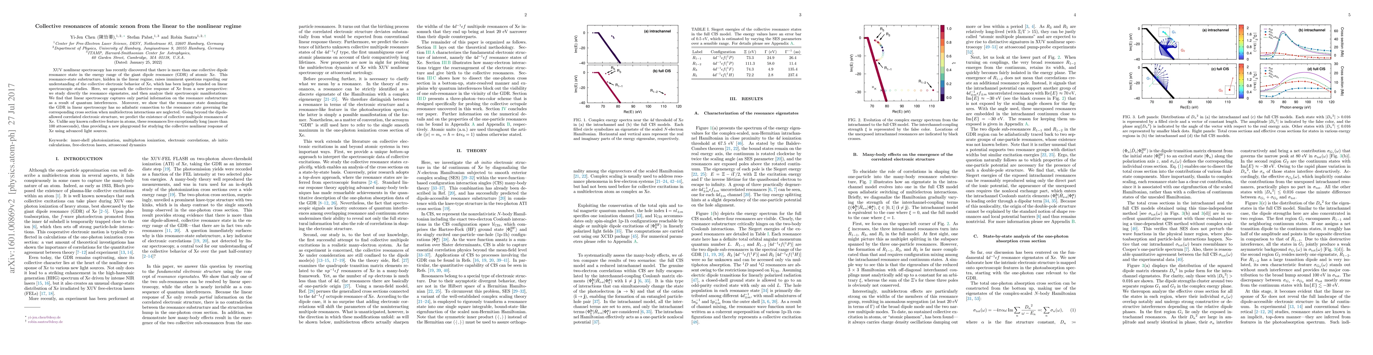 XUV nonlinear spectroscopy has recently discovered that there is more than one collective dipole resonance state in the energy range of the giant dipole resonance (GDR) of atomic Xe. This resonance-state substructure, hidden in the linear regime, raises imminent questions regarding our understanding of the collective electronic behavior of Xe, which has been largely founded on linear spectroscopic studies. Here, we approach the collective response of Xe from a new perspective: we study directly the resonance eigenstates, and then analyze their spectroscopic manifestations. We find that linear spectroscopy captures only partial information on the resonance substructure as a result of quantum interferences. Moreover, we show that the resonance state dominating the GDR in linear spectroscopy has no adiabatic connection to the resonance state governing the corresponding cross section when multielectron interactions are neglected. Going beyond the dipole-allowed correlated electronic structure, we predict the existence of collective multipole resonances of Xe. Unlike any known collective feature in atoms, these resonances live exceptionally long (more than 100 attoseconds), thus providing a new playground for studying the collective nonlinear response of Xe using advanced light sources.