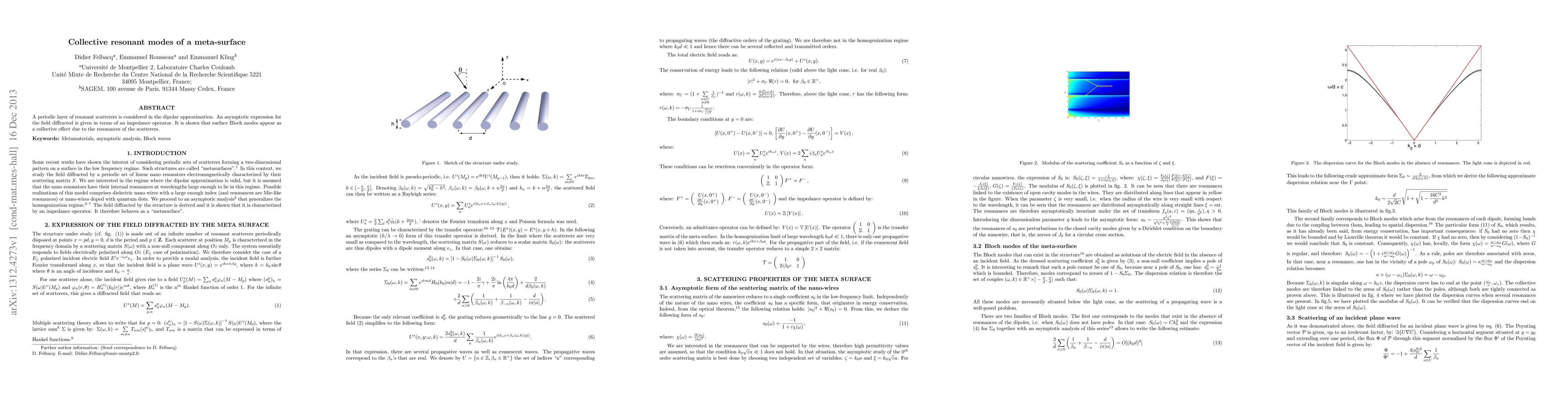 Summary: This paper investigates the collective resonant modes of a periodic meta-surface layer, revealing that surface Bloch modes emerge as a result of the resonant scatterers' interactions, described by an asymptotic impedance operator.