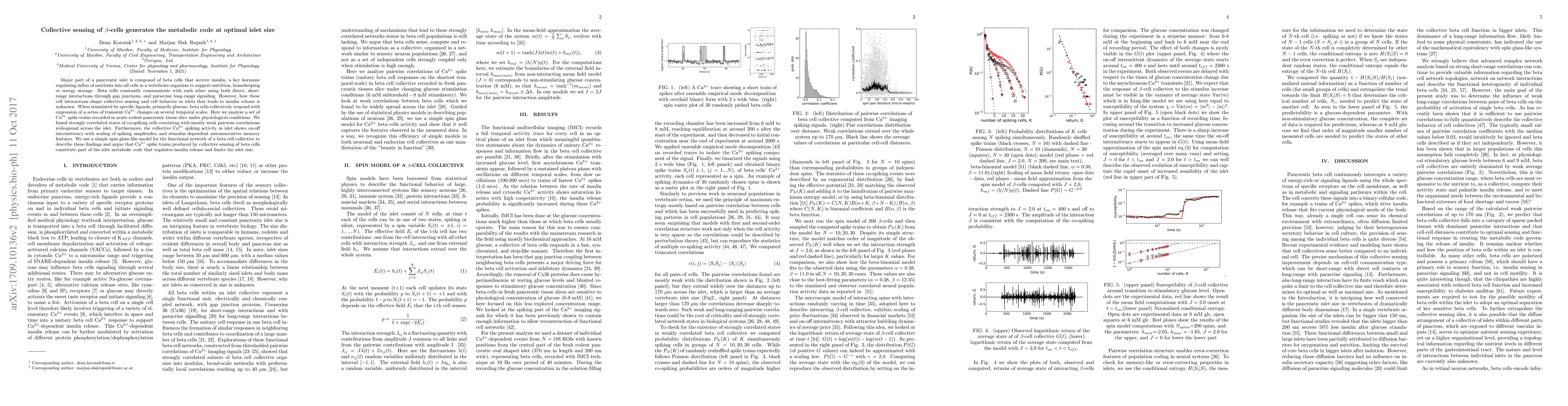 This paper explores how beta cells in pancreatic islets communicate and sense metabolic signals collectively, leading to insulin release. The study reveals that beta cells exhibit correlated Ca$^{2+}$ spiking activity, which forms a metabolic code regulating insulin release and determining optimal islet size.