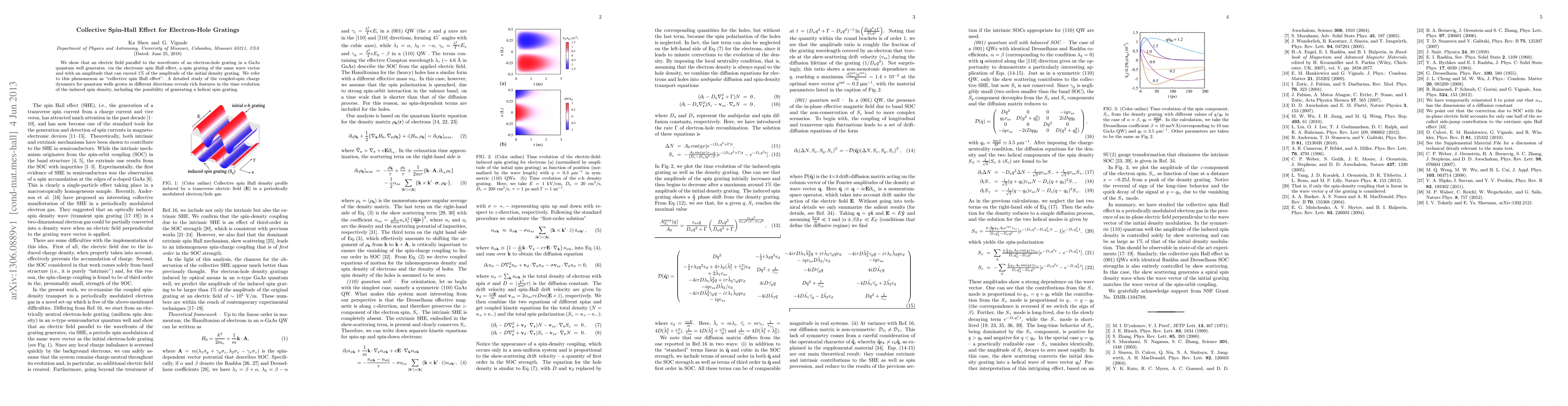 This paper demonstrates the "collective spin Hall effect" in GaAs quantum wells, where an electric field parallel to electron-hole grating wavefronts generates a spin grating with an amplitude exceeding 1% of the initial density grating. The study explores the dynamics of coupled spin-charge interactions, revealing complex time evolution features and the potential for helical spin gratings.
