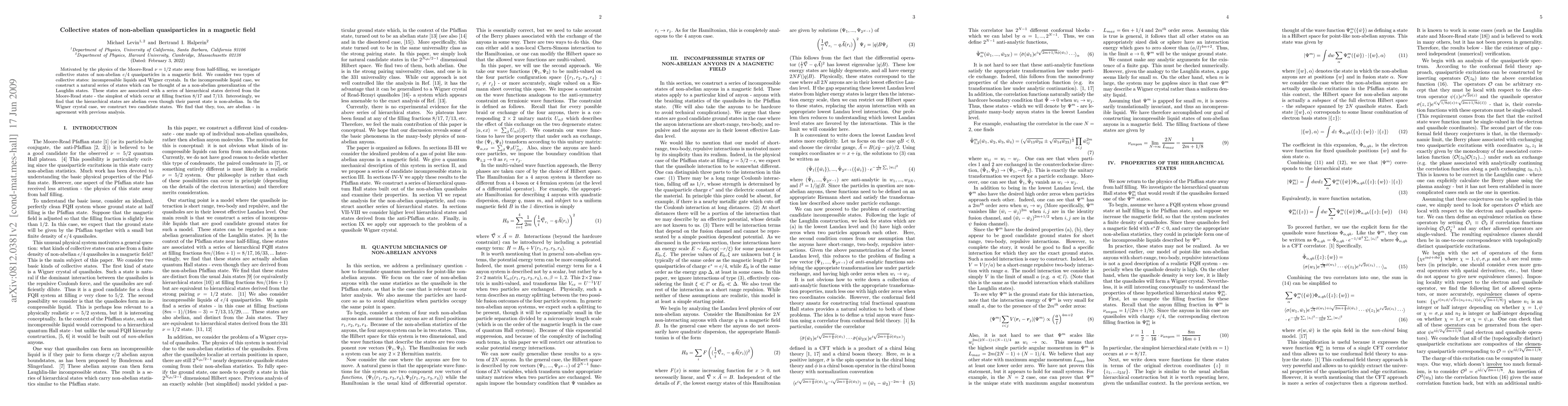 Researchers investigate collective states of non-abelian quasiparticles in a magnetic field, discovering that some states are abelian despite being derived from non-abelian parent states, with implications for understanding quantum Hall effects.