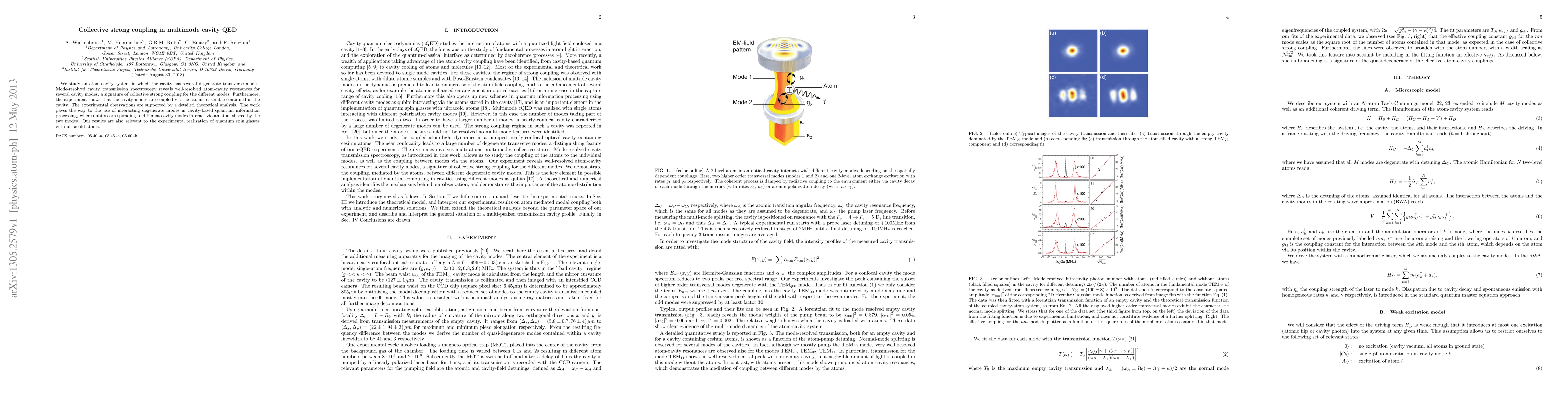 This paper explores collective strong coupling in a multimode cavity QED system, demonstrating well-resolved atom-cavity resonances across multiple cavity modes, indicating interaction via the atomic ensemble. The findings support potential applications in quantum information processing and the realization of quantum spin glasses with ultracold atoms.