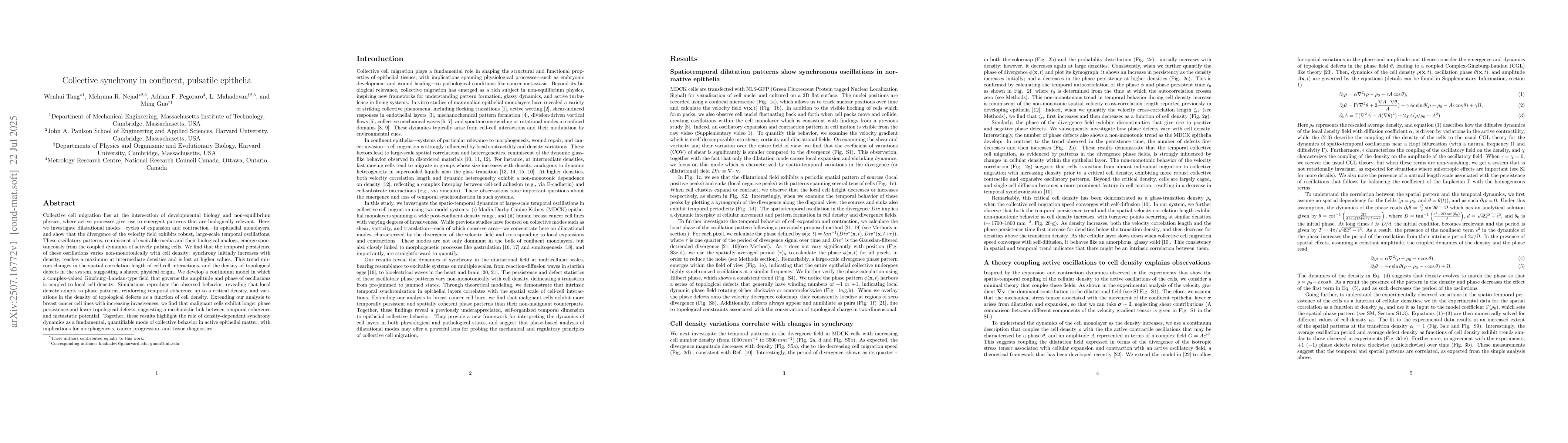 The research highlights the role of density-dependent synchrony dynamics as a fundamental, quantifiable mode of collective behavior in active epithelial matter, with implications for morphogenesis, cancer progression, and tissue diagnostics.