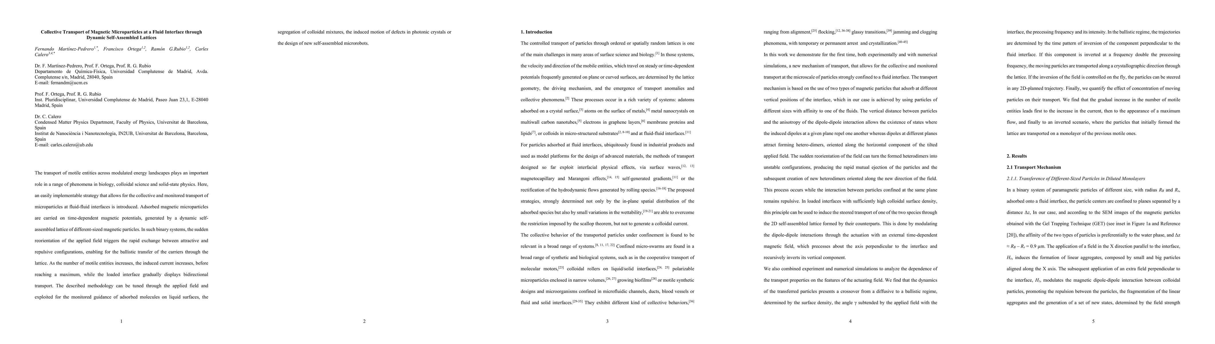 The transport of motile entities across modulated energy landscapes plays an important role in a range of phenomena in biology, colloidal science and solid-state physics. Here, an easily implementable strategy that allows for the collective and monitored transport of microparticles at fluid-fluid interfaces is introduced. Adsorbed magnetic microparticles are carried on time-dependent magnetic potentials, generated by a dynamic self-assembled lattice of different-sized magnetic particles. In such binary systems, the sudden reorientation of the applied field triggers the rapid exchange between attractive and repulsive configurations, enabling for the ballistic transfer of the carriers through the lattice. As the number of motile entities increases, the induced current increases, before reaching a maximum, while the loaded interface gradually displays bidirectional transport. The described methodology can be tuned through the applied field and exploited for the monitored guidance of adsorbed molecules on liquid surfaces, the segregation of colloidal mixtures, the induced motion of defects in photonic crystals or the design of new self-assembled microrobots.