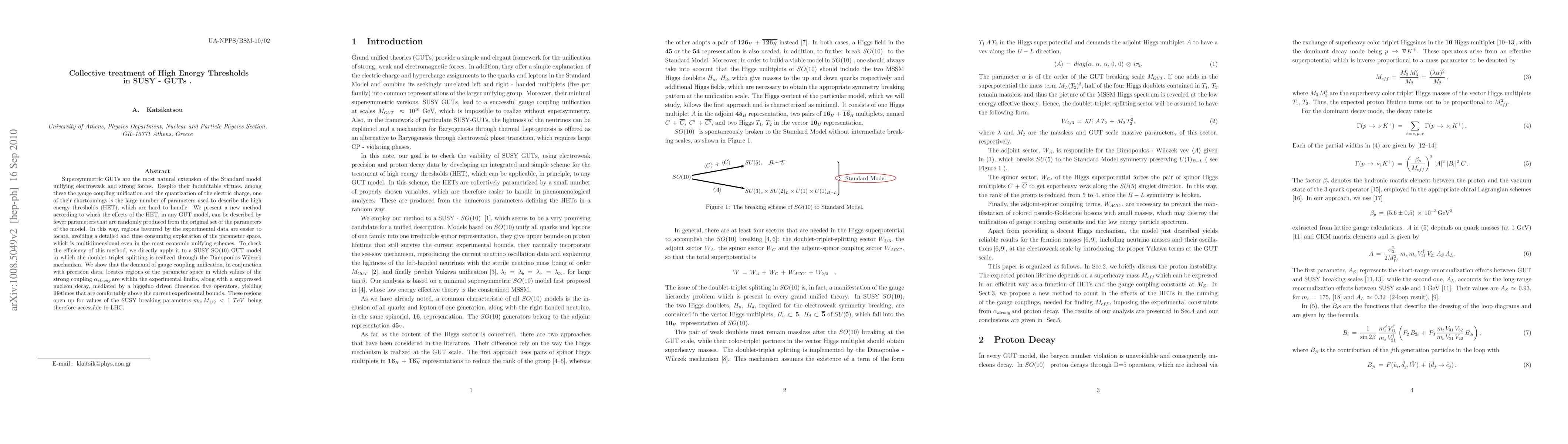 Supersymmetric GUTs are the most natural extension of the Standard model unifying electroweak and strong forces. Despite their indubitable virtues, among these the gauge coupling unification and the quantization of the electric charge, one of their shortcomings is the large number of parameters used to describe the high energy thresholds (HET), which are hard to handle. We present a new method according to which the effects of the HET, in any GUT model, can be described by fewer parameters that are randomly produced from the original set of the parameters of the model. In this way, regions favoured by the experimental data are easier to locate, avoiding a detailed and time consuming exploration of the parameter space, which is multidimensional even in the most economic unifying schemes. To check the efficiency of this method, we directly apply it to a SUSY SO(10) GUT model in which the doublet-triplet splitting is realized through the Dimopoulos-Wilczek mechanism. We show that the demand of gauge coupling unification, in conjunction with precision data, locates regions of the parameter space in which values of the strong coupling \astrong are within the experimental limits, along with a suppressed nucleon decay, mediated by a higgsino driven dimension five operators, yielding lifetimes that are comfortably above the current experimental bounds. These regions open up for values of the SUSY breaking parameters m_0, M_1/2 < 1 TeV being therefore accessible to LHC.