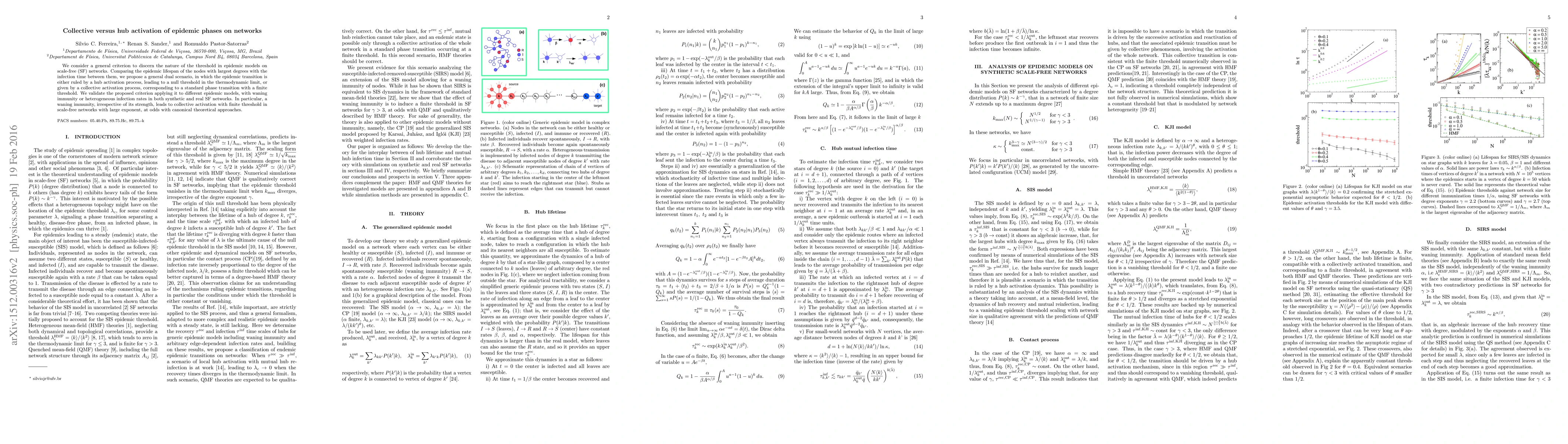 We consider a general criterion to discern the nature of the threshold in epidemic models on scale-free (SF) networks. Comparing the epidemic lifespan of the nodes with largest degrees with the infection time between them, we propose a general dual scenario, in which the epidemic transition is either ruled by a hub activation process, leading to a null threshold in the thermodynamic limit, or given by a collective activation process, corresponding to a standard phase transition with a finite threshold. We validate the proposed criterion applying it to different epidemic models, with waning immunity or heterogeneous infection rates in both synthetic and real SF networks. In particular, a waning immunity, irrespective of its strength, leads to collective activation with finite threshold in scale-free networks with large exponent, at odds with canonical theoretical approaches.