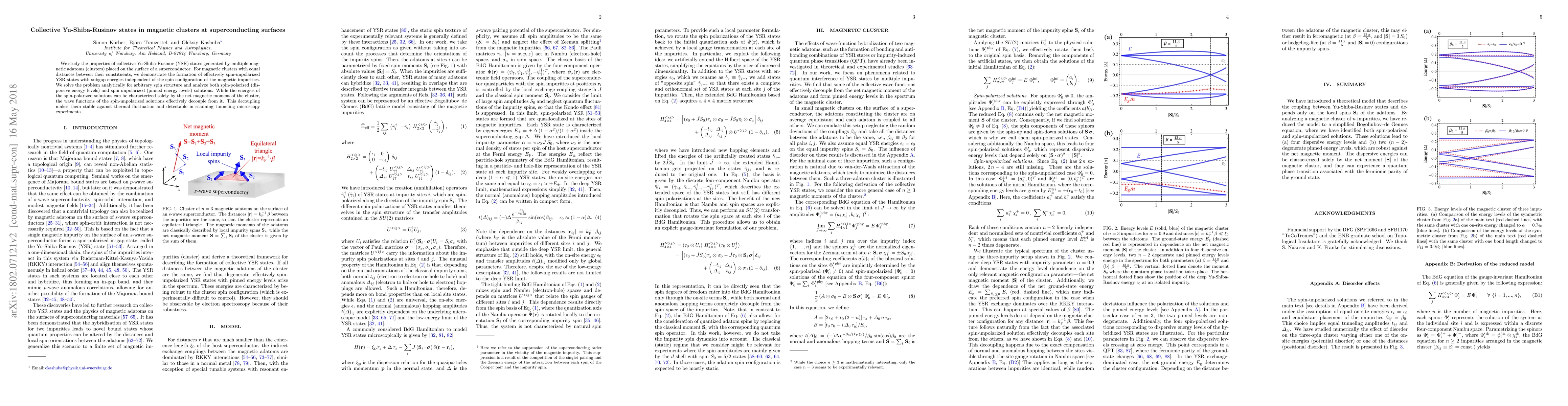We study the properties of collective Yu-Shiba-Rusinov (YSR) states generated by multiple magnetic adatoms (clusters) placed on the surface of a superconductor. For magnetic clusters with equal distances between their constituents, we demonstrate the formation of effectively spin-unpolarized YSR states with subgap energies independent of the spin configuration of the magnetic impurities. We solve the problem analytically for arbitrary spin structure and analyze both spin-polarized (dispersive energy levels) and spin-unpolarized (pinned energy levels) solutions. While the energies of the spin-polarized solutions can be characterized solely by the net magnetic moment of the cluster, the wave functions of the spin-unpolarized solutions effectively decouple from it. This decoupling makes them stable against thermal fluctuation and detectable in scanning tunneling microscopy experiments.