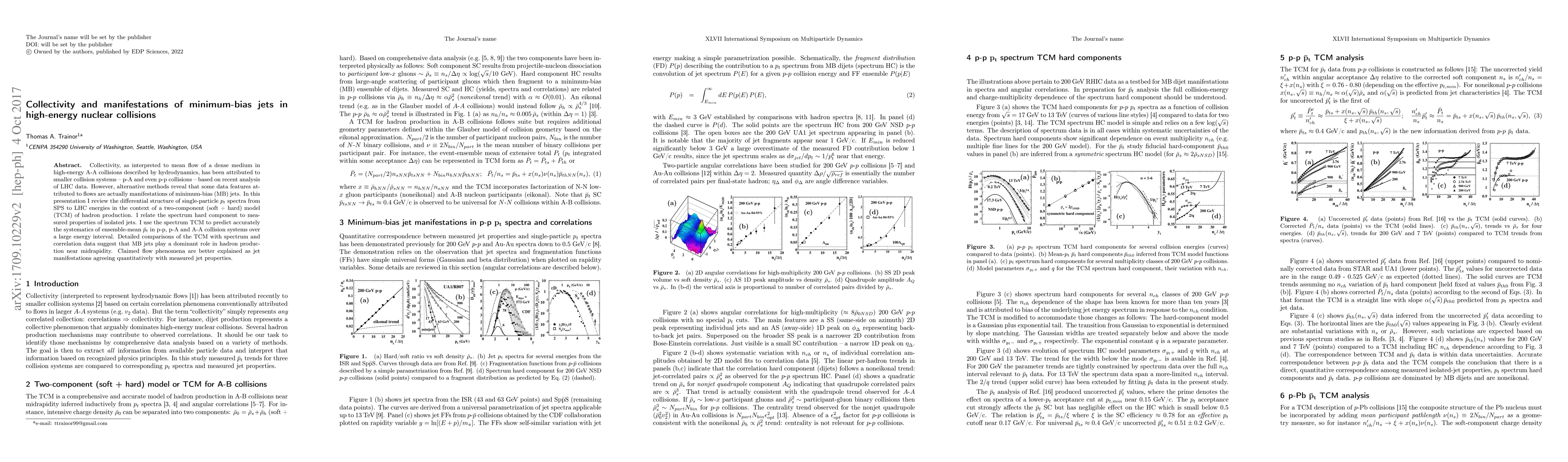 Collectivity, as interpreted to mean flow of a dense medium in high-energy A-A collisions described by hydrodynamics, has been attributed to smaller collision systems -- p-A and even p-p collisions -- based on recent analysis of LHC data. However, alternative methods reveal that some data features attributed to flows are actually manifestations of minimum-bias (MB) jets. In this presentation I review the differential structure of single-particle $p_t$ spectra from SPS to LHC energies in the context of a two-component (soft + hard) model (TCM) of hadron production. I relate the spectrum hard component to measured properties of isolated jets. I use the spectrum TCM to predict accurately the systematics of ensemble-mean $\bar p_t$ in p-p, p-A and A-A collision systems over a large energy interval. Detailed comparisons of the TCM with spectrum and correlation data suggest that MB jets play a dominant role in hadron production near midrapidity. Claimed flow phenomena are better explained as jet manifestations agreeing quantitatively with measured jet properties.
