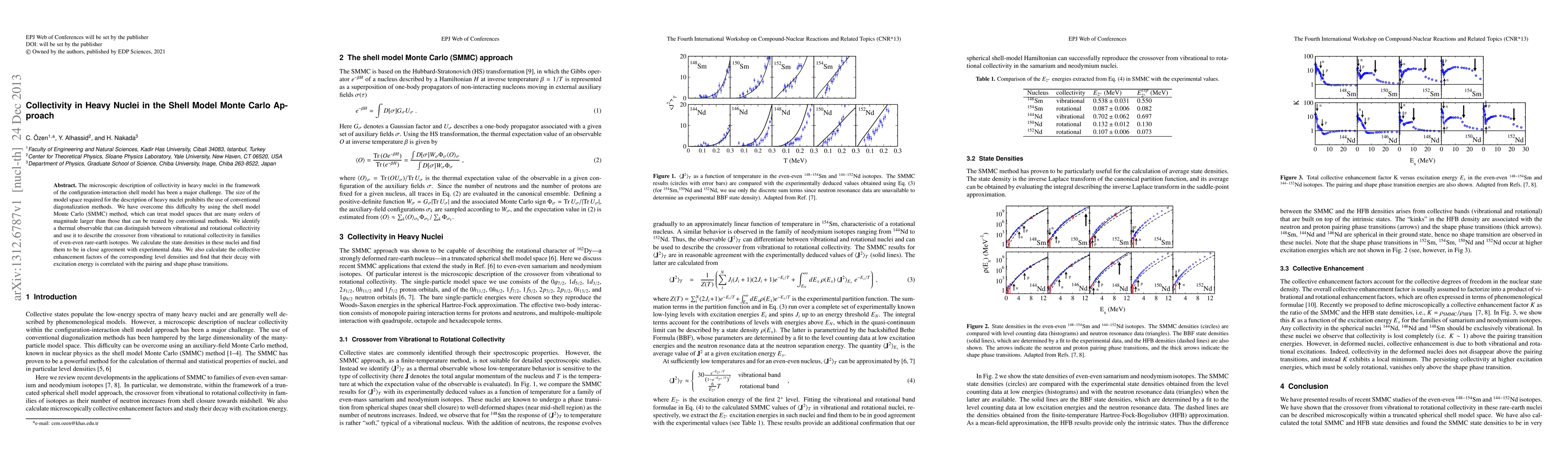 The microscopic description of collectivity in heavy nuclei in the framework of the configuration-interaction shell model has been a major challenge. The size of the model space required for the description of heavy nuclei prohibits the use of conventional diagonalization methods. We have overcome this difficulty by using the shell model Monte Carlo (SMMC) method, which can treat model spaces that are many orders of magnitude larger than those that can be treated by conventional methods. We identify a thermal observable that can distinguish between vibrational and rotational collectivity and use it to describe the crossover from vibrational to rotational collectivity in families of even-even rare-earth isotopes. We calculate the state densities in these nuclei and find them to be in close agreement with experimental data. We also calculate the collective enhancement factors of the corresponding level densities and find that their decay with excitation energy is correlated with the pairing and shape phase transitions.