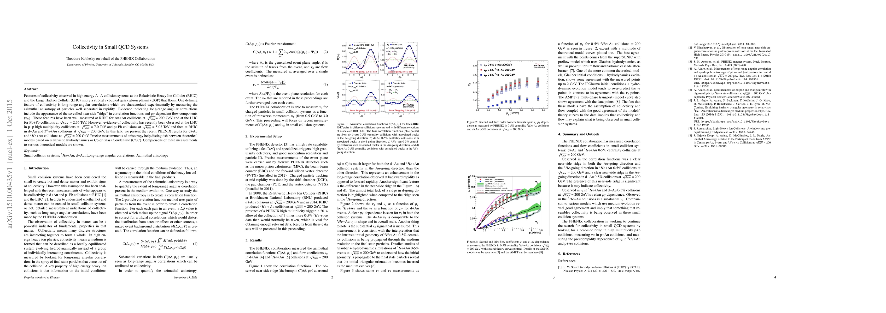 This paper discusses the observation of collectivity in small systems like d+Au and $^3He$+Au collisions at RHIC, indicating a strongly coupled quark gluon plasma. The study highlights long-range angular correlations and $p_T$ dependent flow components, providing insights into distinguishing between relativistic hydrodynamics and Color Glass Condensate models.