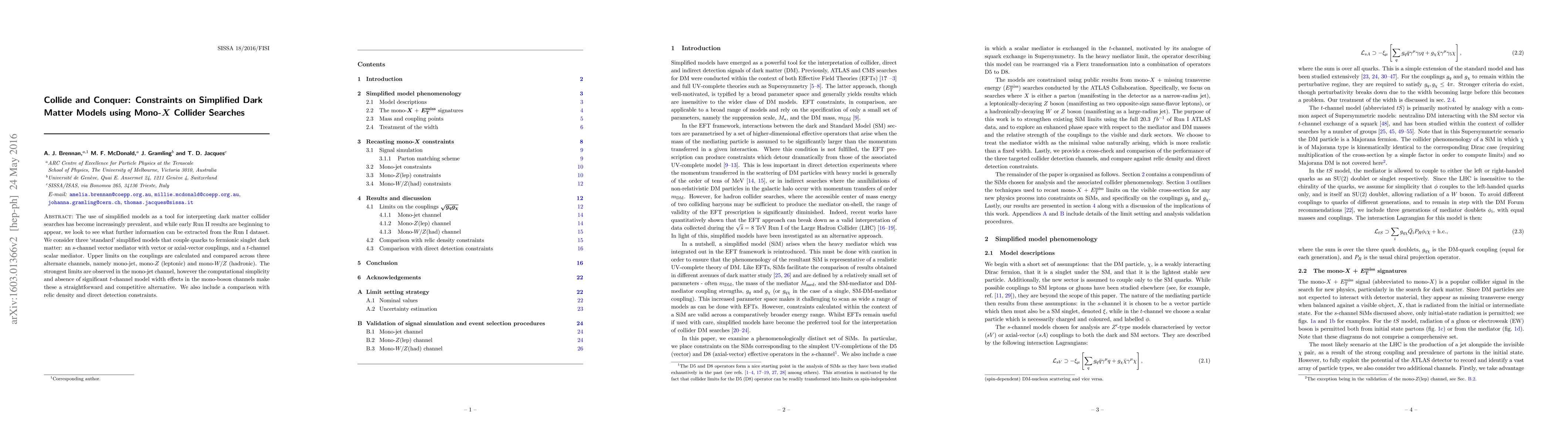 This paper examines the constraints on simplified dark matter models using data from Run I of the Large Hadron Collider. The study focuses on three simplified models involving quark-dark matter interactions and finds that the strongest limits on couplings are derived from the mono-jet channel, while mono-boson channels offer a simpler alternative.