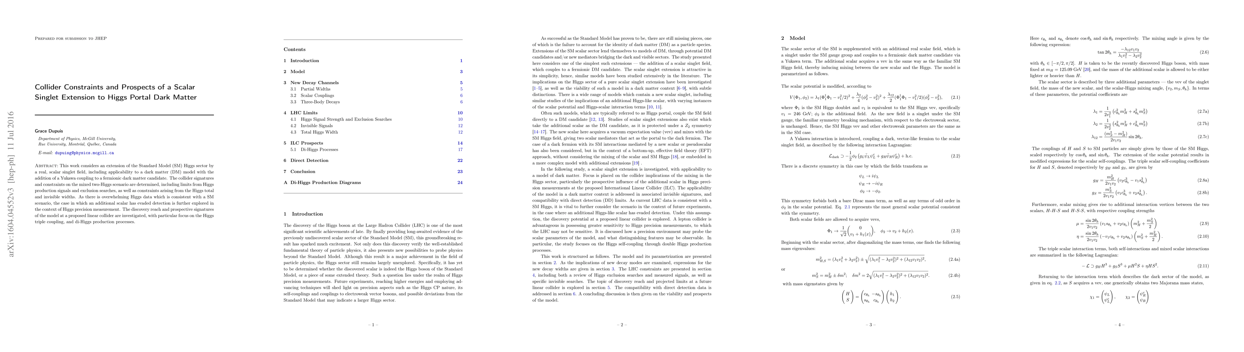 This work considers an extension of the Standard Model (SM) Higgs sector by a real, scalar singlet field, including applicability to a dark matter (DM) model with the addition of a Yukawa coupling to a Dirac fermion. The collider signatures and constraints on the mixed two-Higgs scenario are determined, including limits from Higgs production signals and exclusion searches, as well as constraints arising from the Higgs total and invisible widths. As there is overwhelming Higgs data which is consistent with a SM scenario, the case in which an additional scalar has evaded detection is further explored in the context of Higgs precision measurement. The discovery reach and prospective signatures of the model at a proposed linear collider are investigated, with particular focus on the Higgs triple coupling, and di-Higgs production processes.