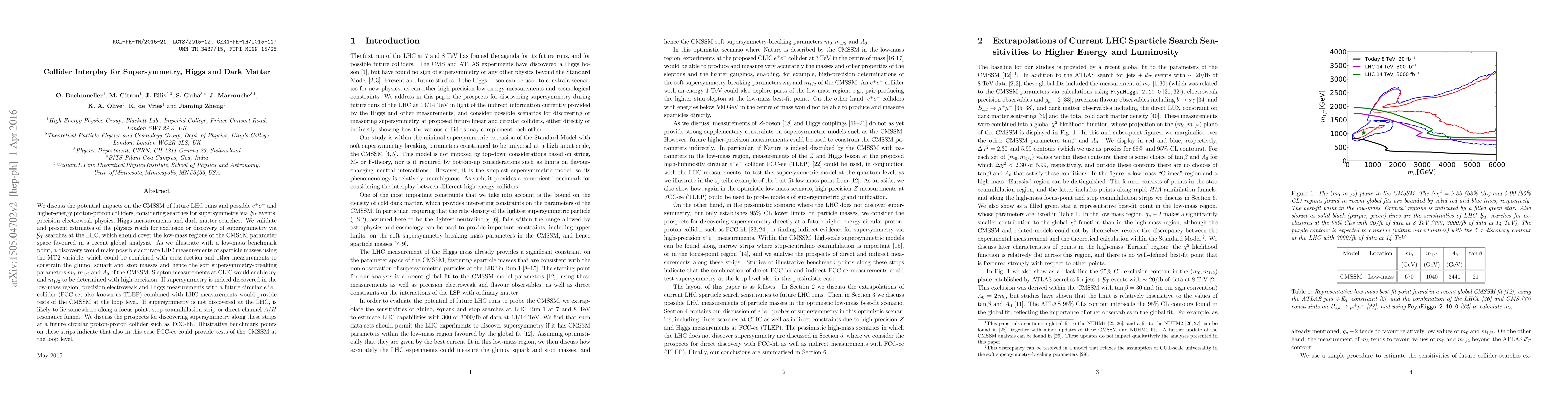 We discuss the potential impacts on the CMSSM of future LHC runs and possible electron-positron and higher-energy proton-proton colliders, considering searches for supersymmetry via MET events, precision electroweak physics, Higgs measurements and dark matter searches. We validate and present estimates of the physics reach for exclusion or discovery of supersymmetry via MET searches at the LHC, which should cover the low-mass regions of the CMSSM parameter space favoured in a recent global analysis. As we illustrate with a low-mass benchmark point, a discovery would make possible accurate LHC measurements of sparticle masses using the MT2 variable, which could be combined with cross-section and other measurements to constrain the gluino, squark and stop masses and hence the soft supersymmetry-breaking parameters m_0, m_{1/2} and A_0 of the CMSSM. Slepton measurements at CLIC would enable m_0 and m_{1/2} to be determined with high precision. If supersymmetry is indeed discovered in the low-mass region, precision electroweak and Higgs measurements with a future circular electron-positron collider (FCC-ee, also known as TLEP) combined with LHC measurements would provide tests of the CMSSM at the loop level. If supersymmetry is not discovered at the LHC, is likely to lie somewhere along a focus-point, stop coannihilation strip or direct-channel A/H resonance funnel. We discuss the prospects for discovering supersymmetry along these strips at a future circular proton-proton collider such as FCC-hh. Illustrative benchmark points on these strips indicate that also in this case FCC-ee could provide tests of the CMSSM at the loop level.