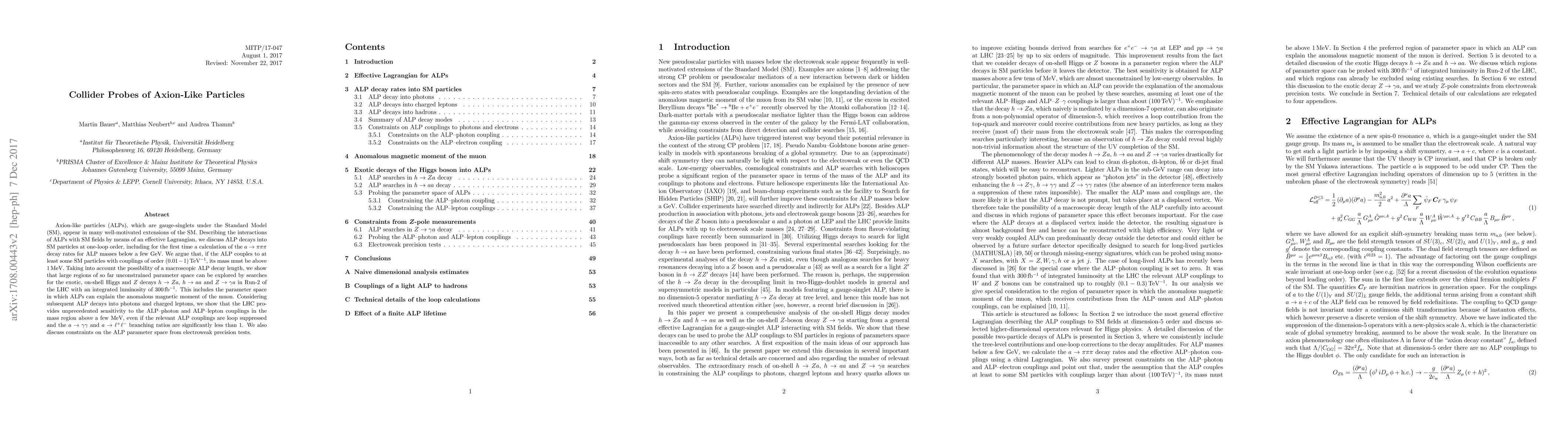 This paper explores the potential of collider experiments, particularly the LHC, to detect axion-like particles (ALPs) through their decays into Standard Model particles, including exotic decays involving the Higgs and Z bosons. It highlights the LHC's capability to probe ALPs in previously unconstrained mass regions, especially in explaining the anomalous magnetic moment of the muon.