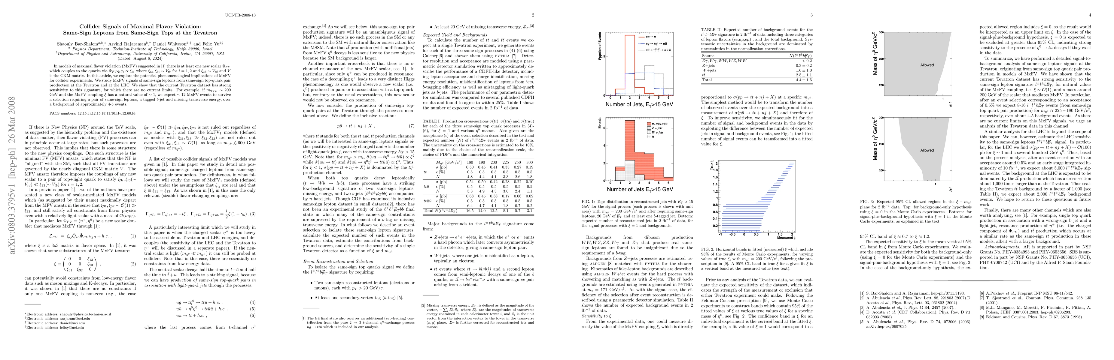 This paper investigates the collider signals of maximal flavor violation (MxFV) in models featuring a new scalar $\Phi_{FV}$ that couples to quarks, focusing on same-sign leptons from same-sign top-quark pair production. It demonstrates that the Tevatron's current dataset has significant sensitivity to this signature, predicting around 12 MxFV events for a $\Phi_{FV}$ mass of 200 GeV and a natural coupling value, against a background of 4-5 events.