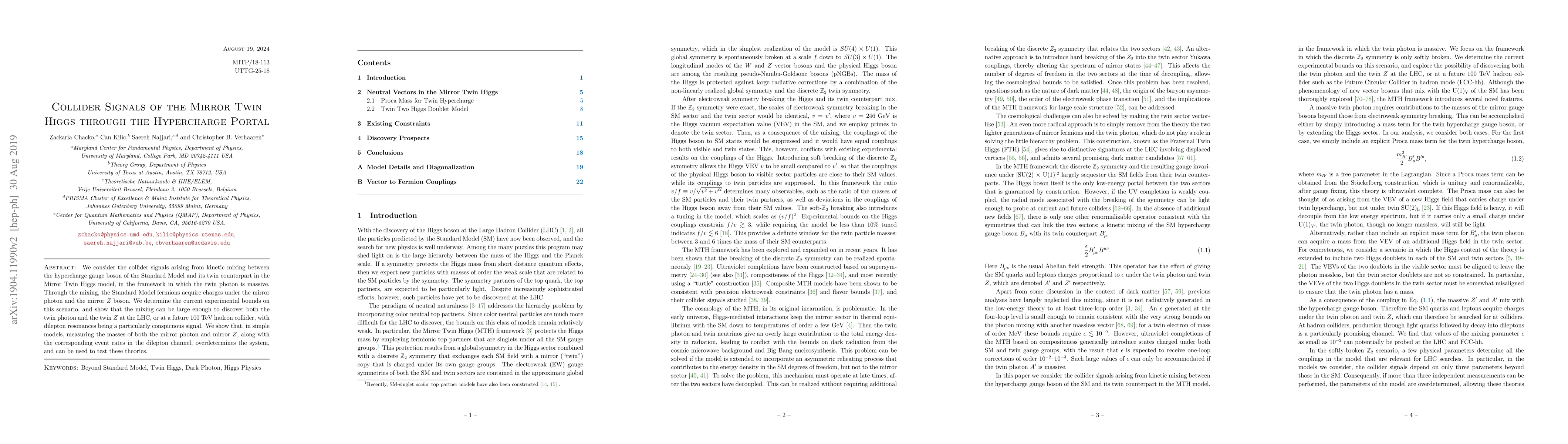 We consider the collider signals arising from kinetic mixing between the hypercharge gauge boson of the Standard Model and its twin counterpart in the Mirror Twin Higgs model, in the framework in which the twin photon is massive. Through the mixing, the Standard Model fermions acquire charges under the mirror photon and the mirror Z boson. We determine the current experimental bounds on this scenario, and show that the mixing can be large enough to discover both the twin photon and the twin Z at the LHC, or at a future 100 TeV hadron collider, with dilepton resonances being a particularly conspicuous signal. We show that, in simple models, measuring the masses of both the mirror photon and mirror Z, along with the corresponding event rates in the dilepton channel, overdetermines the system, and can be used to test these theories.