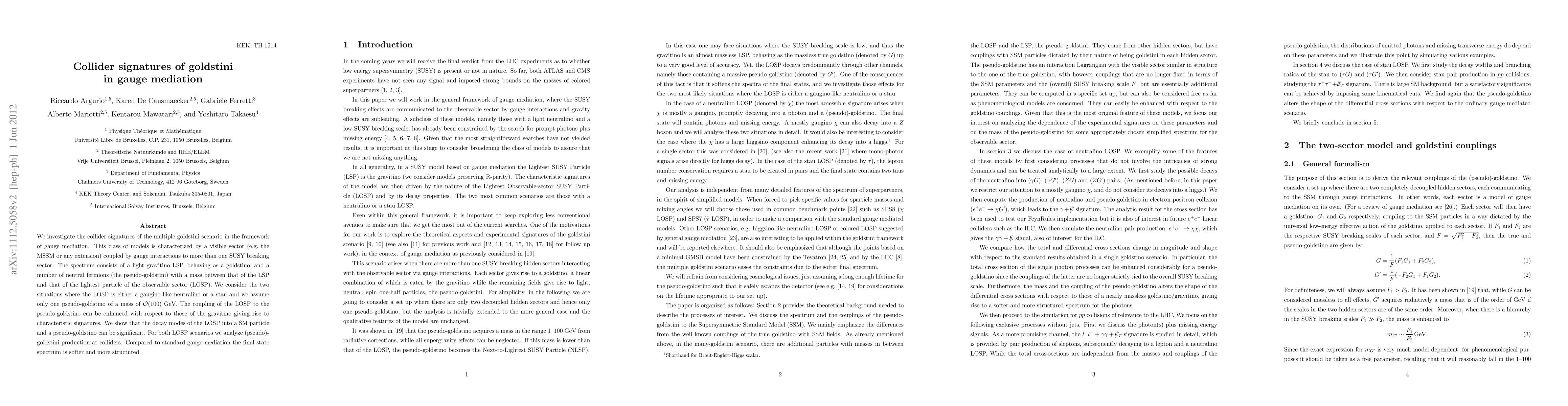We investigate the collider signatures of the multiple goldstini scenario in the framework of gauge mediation. This class of models is characterized by a visible sector (e.g. the MSSM or any extension) coupled by gauge interactions to more than one SUSY breaking sector. The spectrum consists of a light gravitino LSP, behaving as a goldstino, and a number of neutral fermions (the pseudo-goldstini) with a mass between that of the LSP and that of the lightest particle of the observable sector (LOSP). We consider the two situations where the LOSP is either a gaugino-like neutralino or a stau and we assume only one pseudo-goldstino of a mass of O(100) GeV. The coupling of the LOSP to the pseudo-goldstino can be enhanced with respect to those of the gravitino giving rise to characteristic signatures. We show that the decay modes of the LOSP into a SM particle and a pseudo-goldstino can be significant. For both LOSP scenarios we analyze (pseudo)-goldstini production at colliders. Compared to standard gauge mediation the final state spectrum is softer and more structured.