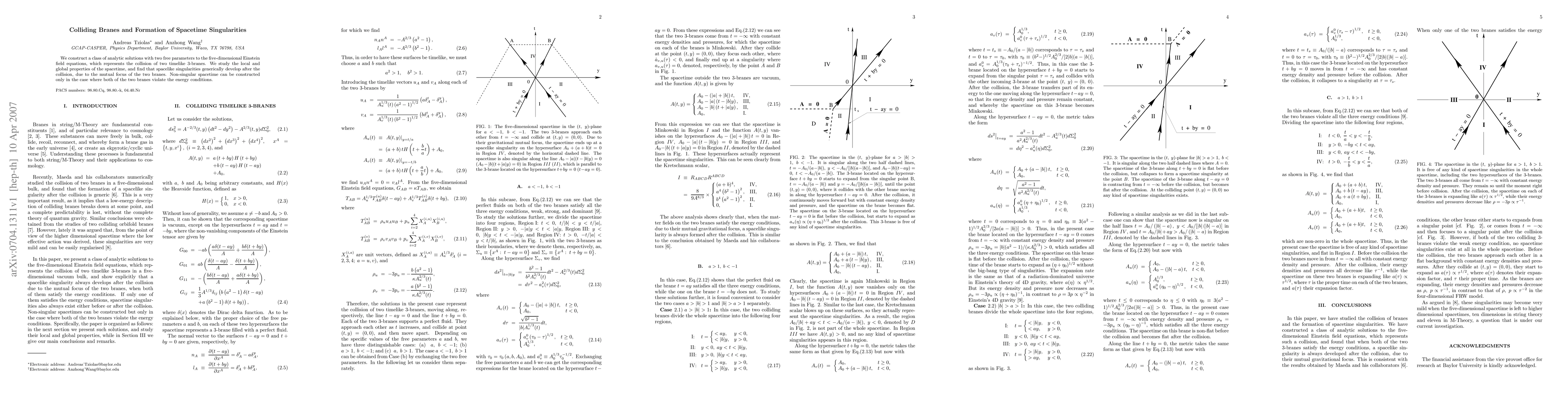 This paper presents analytic solutions to the five-dimensional Einstein field equations modeling the collision of two timelike 3-branes, revealing the development of spacelike singularities due to the mutual focus of the branes. Non-singular spacetimes are only possible if both branes violate the energy conditions.