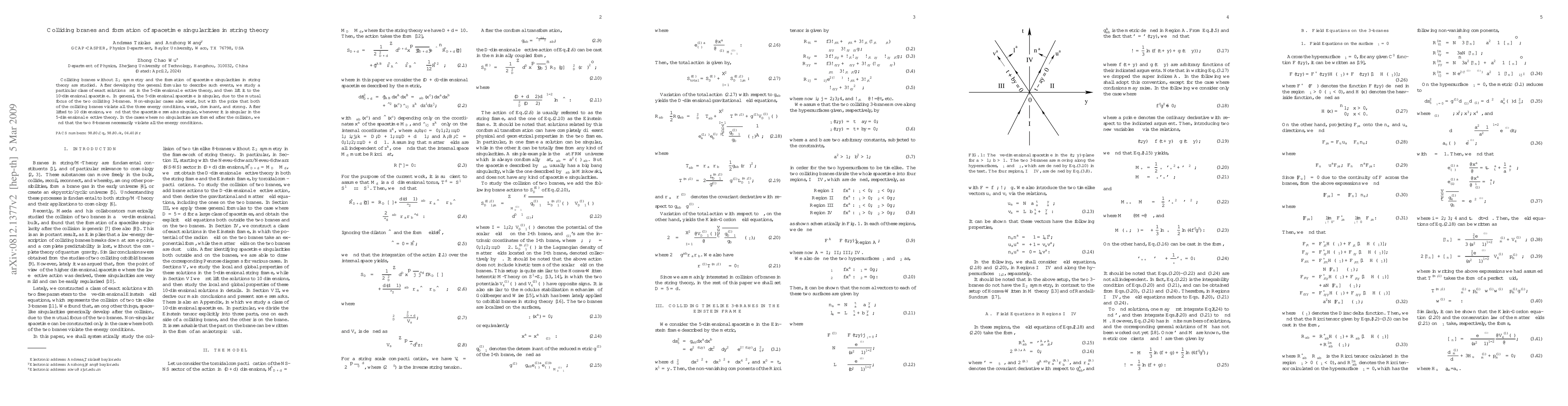 This paper investigates colliding branes in string theory, particularly focusing on scenarios where spacetime singularities emerge. The study reveals that while some 5-dimensional effective solutions may be non-singular, they violate all energy conditions, and in 10-dimensional spacetime, singularities persist if they exist in the lower dimension.