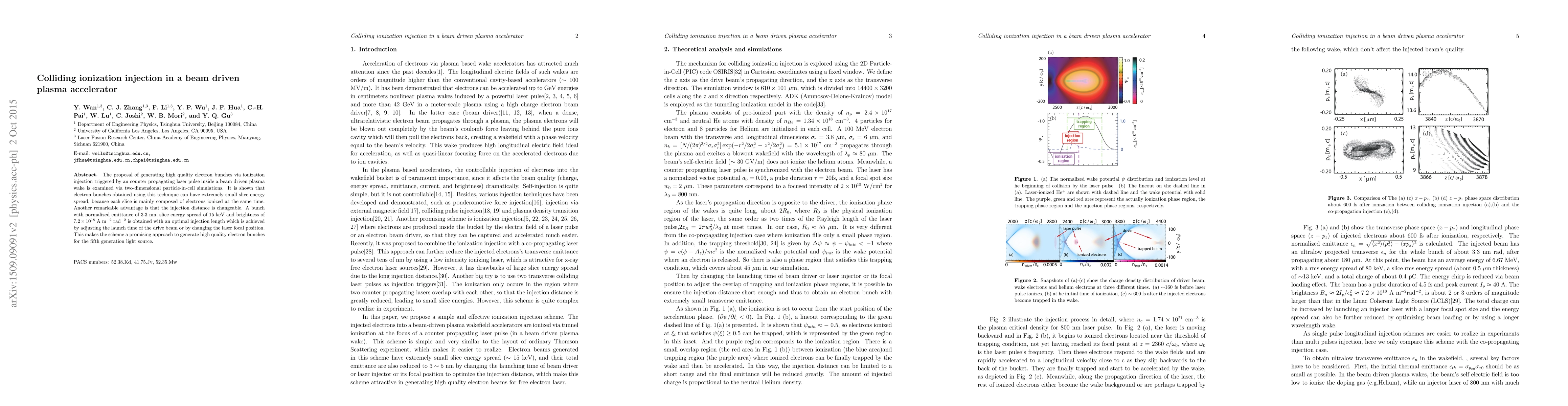 The paper introduces a colliding ionization injection technique in a beam-driven plasma accelerator, enabling the generation of high-quality electron bunches with low emittance and high brightness.