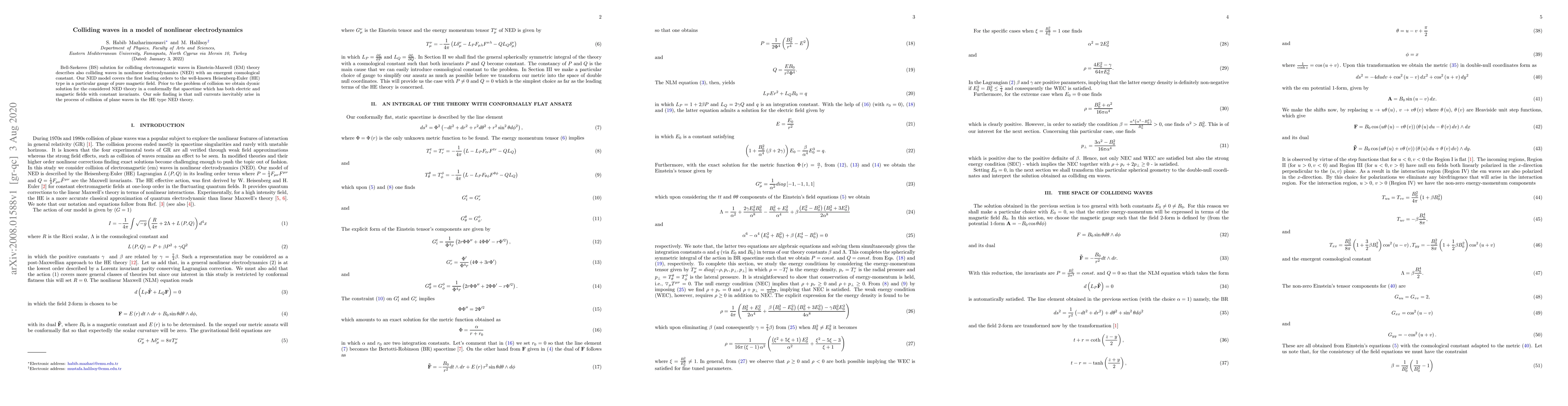 This paper explores colliding electromagnetic waves in a nonlinear electrodynamics (NED) model, extending the Bell-Szekeres solution to NED with an emergent cosmological constant. It finds that null currents emerge during the collision of plane waves in the Heisenberg-Euler type NED theory.