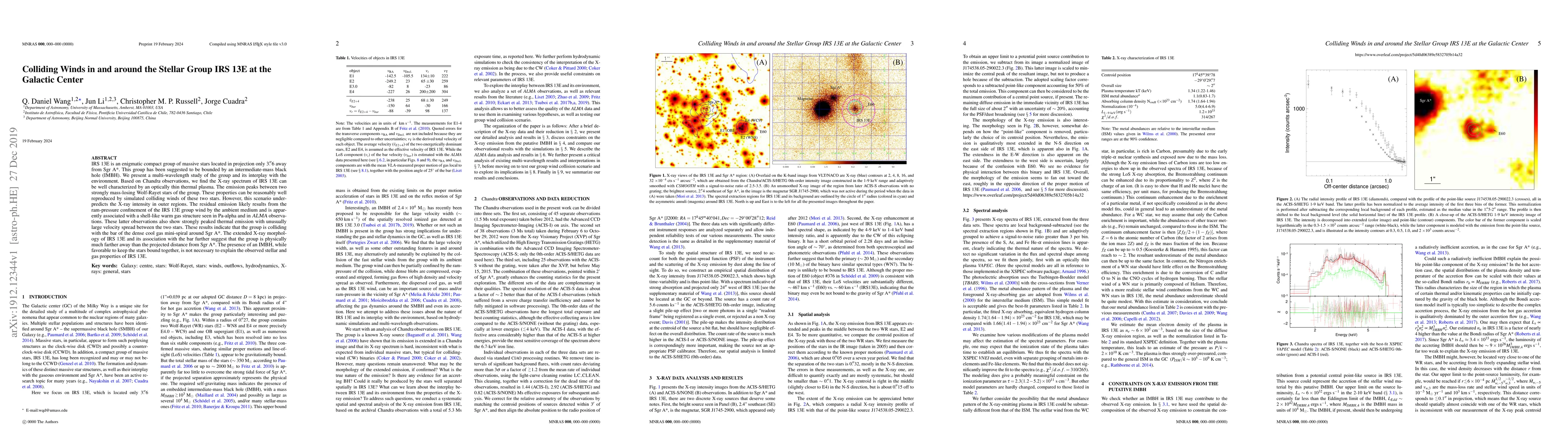 The study employs multi-wavelength observations, including Chandra X-ray data and ALMA molecular line data, combined with hydrodynamical simulations to model the stellar wind collision and interaction with the ambient medium in the IRS 13E stellar group near the Galactic Center.