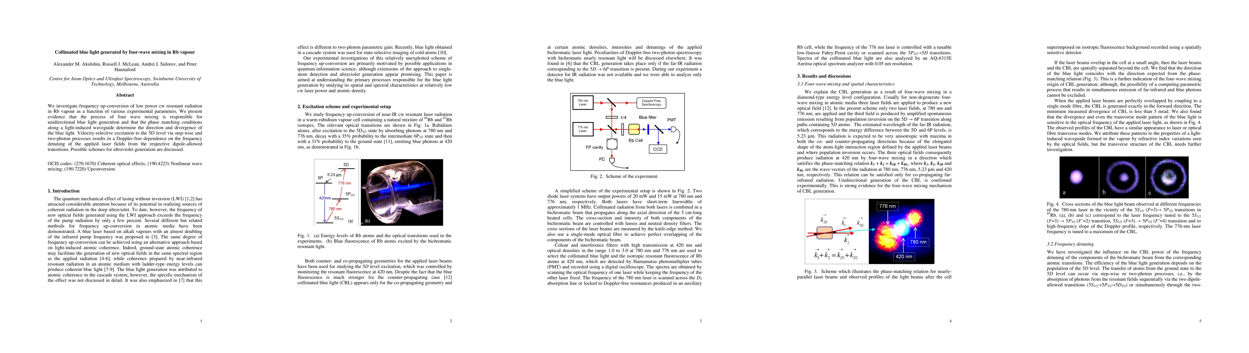 Researchers discovered that four-wave mixing in rubidium vapor generates unidirectional blue light with controlled direction and divergence, opening possibilities for ultraviolet generation.