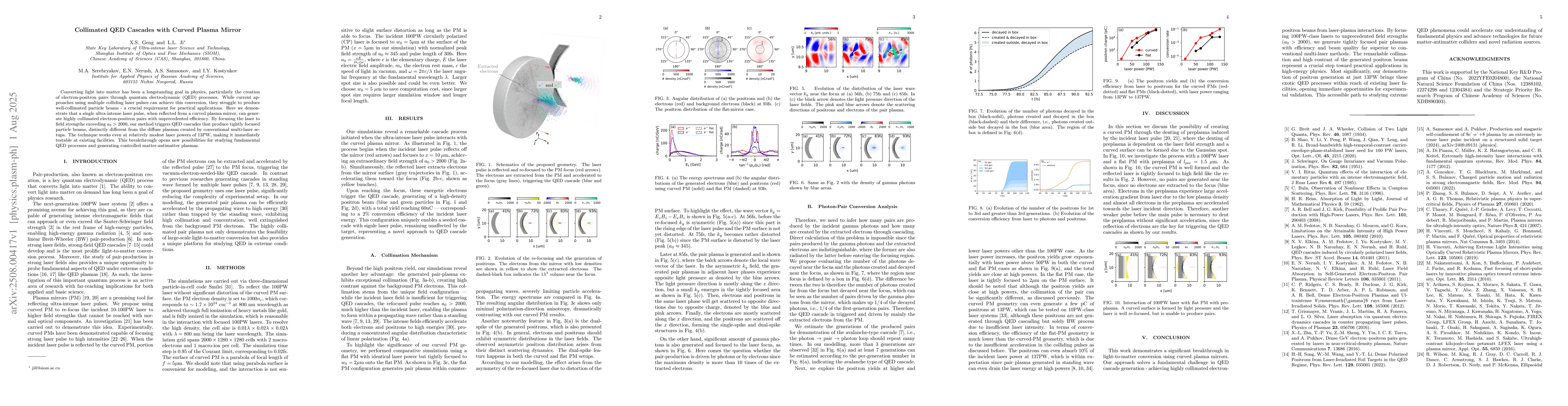 The research presents a novel approach to QED cascade generation using a curved plasma mirror, achieving unprecedented collimation and efficiency in electron-positron pair production.