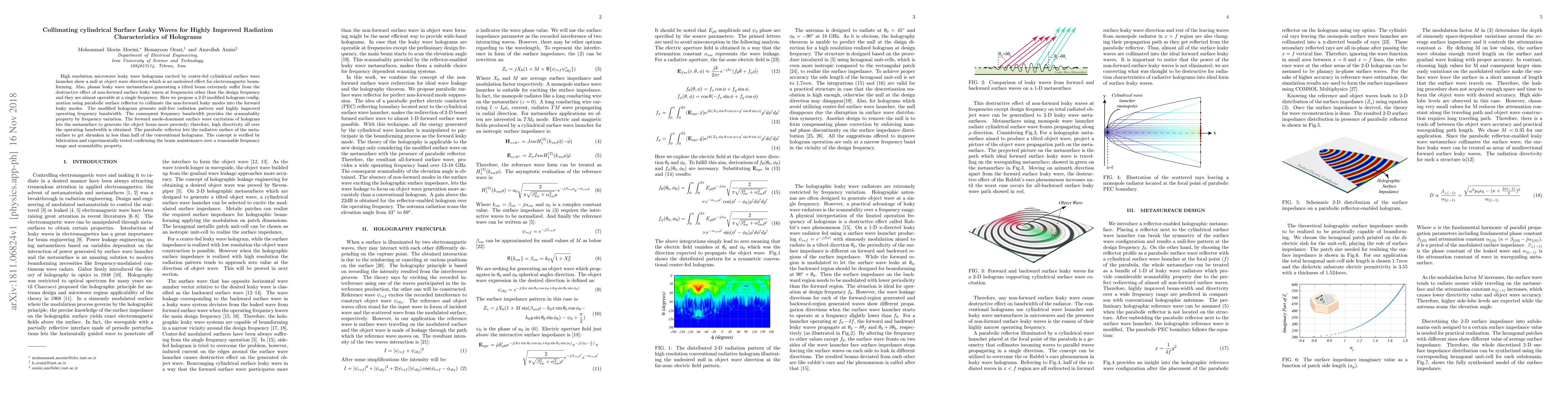 This paper proposes a 2-D modified hologram configuration using a parabolic surface reflector to collimate non-forward leaky modes into forward modes, achieving a null-free radiation pattern and improved frequency bandwidth for microwave leaky wave holograms. Experimental results confirm enhanced directivity and beam maintenance over a reasonable frequency range.