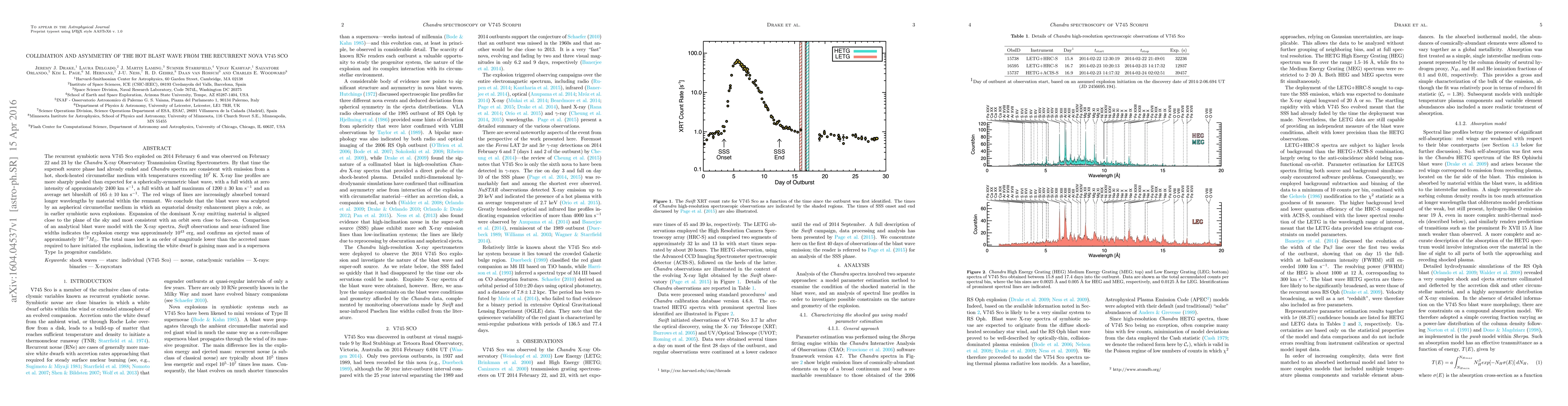 The hot blast wave from V745 Scorpii was sculpted by an aspherical circumstellar medium with an equatorial density enhancement, indicating the white dwarf is gaining mass and a supernova Type 1a progenitor candidate.
