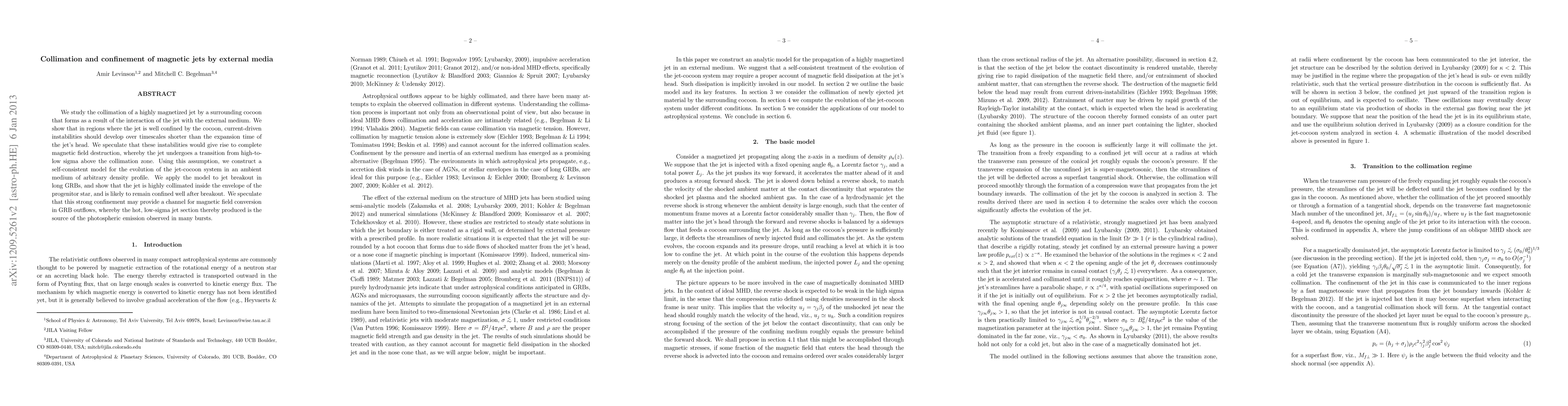 This paper investigates how a surrounding cocoon formed by the interaction of a magnetized jet with external media can collimate and confine the jet. It proposes that current-driven instabilities in the cocoon may lead to magnetic field destruction, transitioning the jet from high to low sigma, and applies this model to long GRB jets, suggesting strong confinement and potential magnetic field conversion in GRB outflows.
