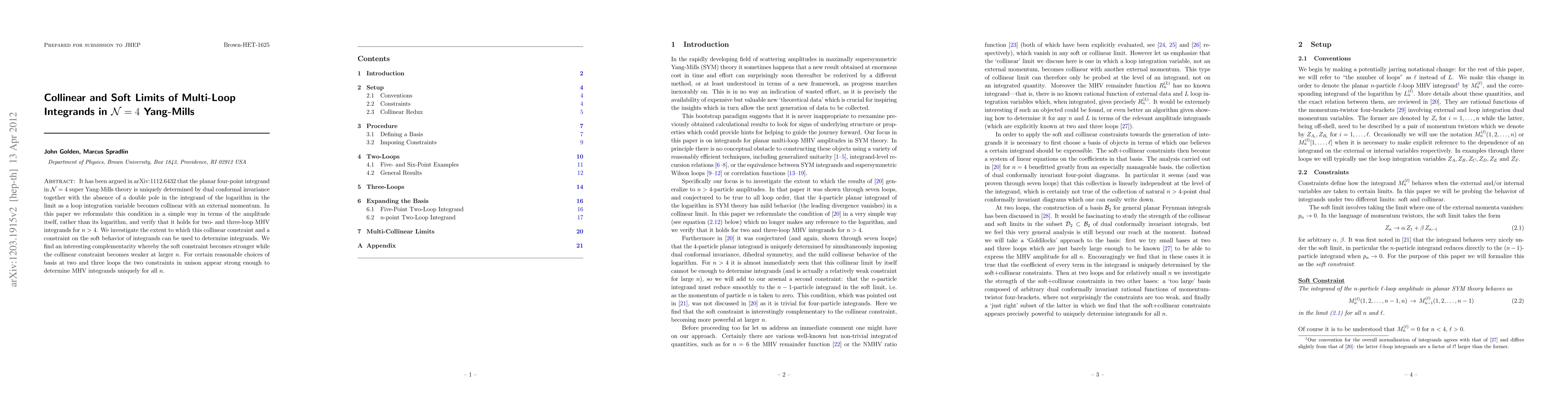 It has been argued in arXiv:1112.6432 that the planar four-point integrand in N=4 super Yang-Mills theory is uniquely determined by dual conformal invariance together with the absence of a double pole in the integrand of the logarithm in the limit as a loop integration variable becomes collinear with an external momentum. In this paper we reformulate this condition in a simple way in terms of the amplitude itself, rather than its logarithm, and verify that it holds for two- and three-loop MHV integrands for n>4. We investigate the extent to which this collinear constraint and a constraint on the soft behavior of integrands can be used to determine integrands. We find an interesting complementarity whereby the soft constraint becomes stronger while the collinear constraint becomes weaker at larger n. For certain reasonable choices of basis at two and three loops the two constraints in unison appear strong enough to determine MHV integrands uniquely for all n.
