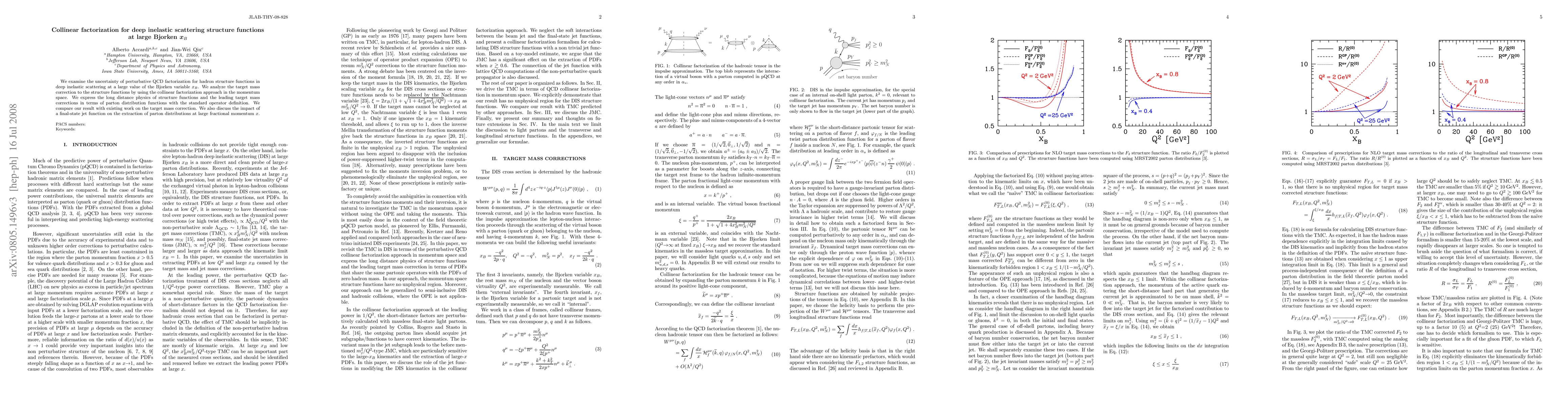 This paper investigates the uncertainty in perturbative QCD factorization for hadron structure functions in deep inelastic scattering at high Bjorken xB, employing a collinear factorization approach. It compares the target mass correction results with existing studies and discusses the influence of final-state jet functions on parton distribution extraction at large x.