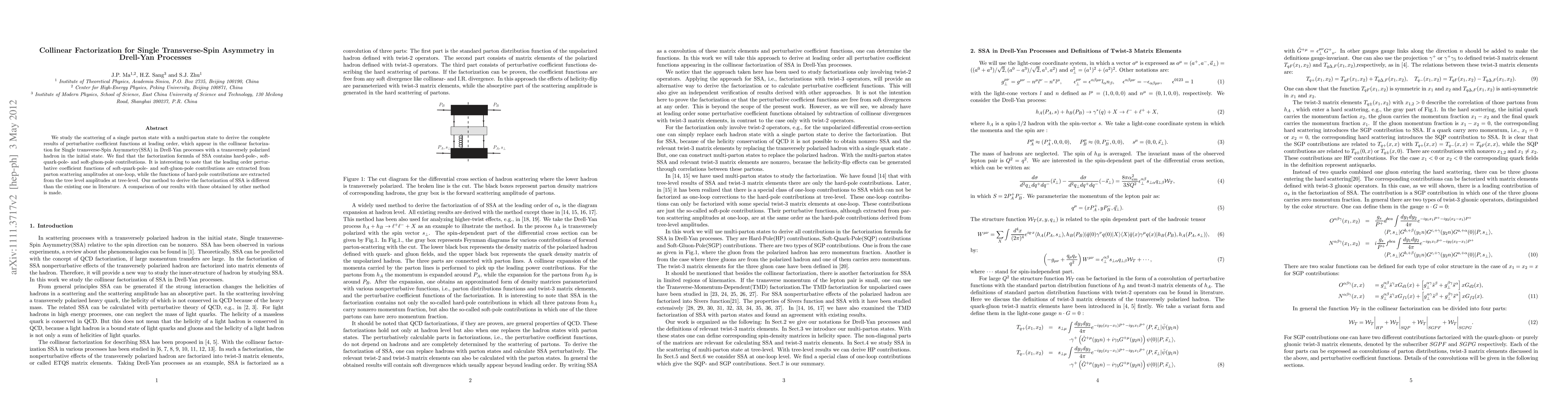 We study the scattering of a single parton state with a multi-parton state to derive the complete results of perturbative coefficient functions at leading order, which appear in the collinear factorization for Single transverse-Spin Asymmetry(SSA) in Drell-Yan processes with a transversely polarized hadron in the initial state. We find that the factorization formula of SSA contains hard-pole-, soft-quark-pole- and soft-gluon-pole contributions. It is interesting to note that the leading order perturbative coefficient functions of soft-quark-pole- and soft-gluon-pole contributions are extracted from parton scattering amplitudes at one-loop, while the functions of hard-pole contributions are extracted from the tree level amplitudes at tree-level. Our method to derive the factorization of SSA is different than the existing one in literature. A comparison of our results with those obtained by other method is made.