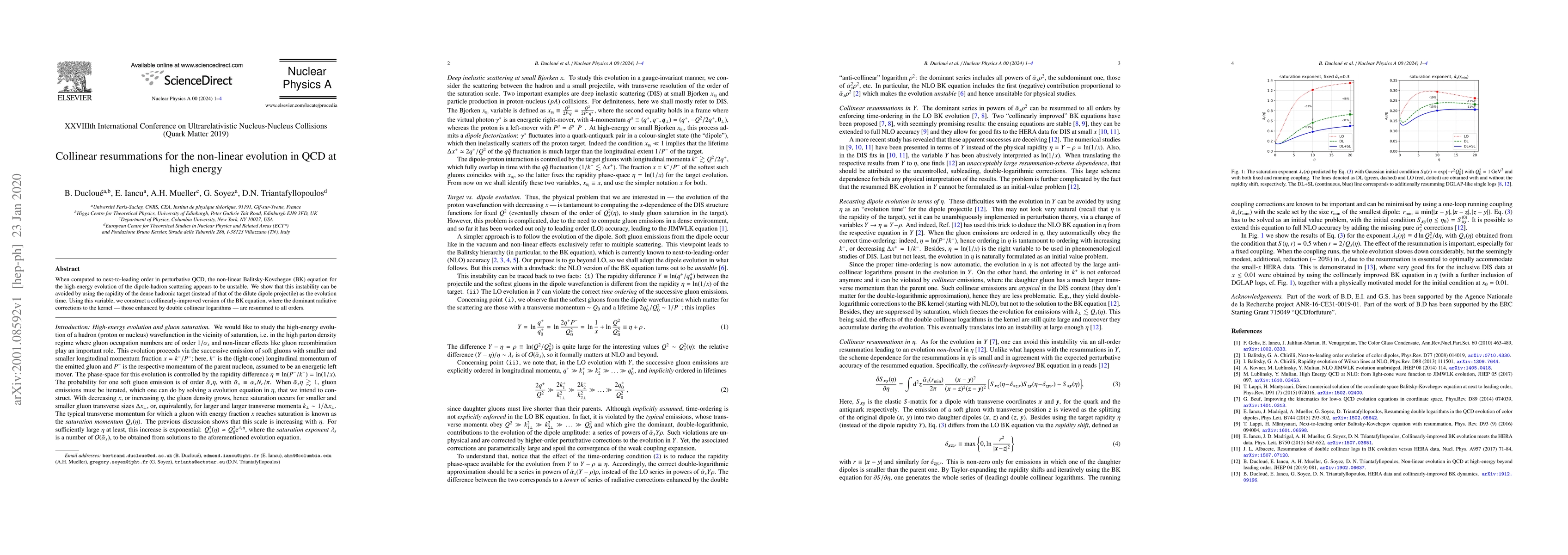 Researchers developed a new approach to stabilize the Balitsky-Kovchegov equation, which describes high-energy interactions in quantum chromodynamics. By using the target's rapidity as the evolution time, they created a collinearly-improved version of the equation that resums dominant radiative corrections.