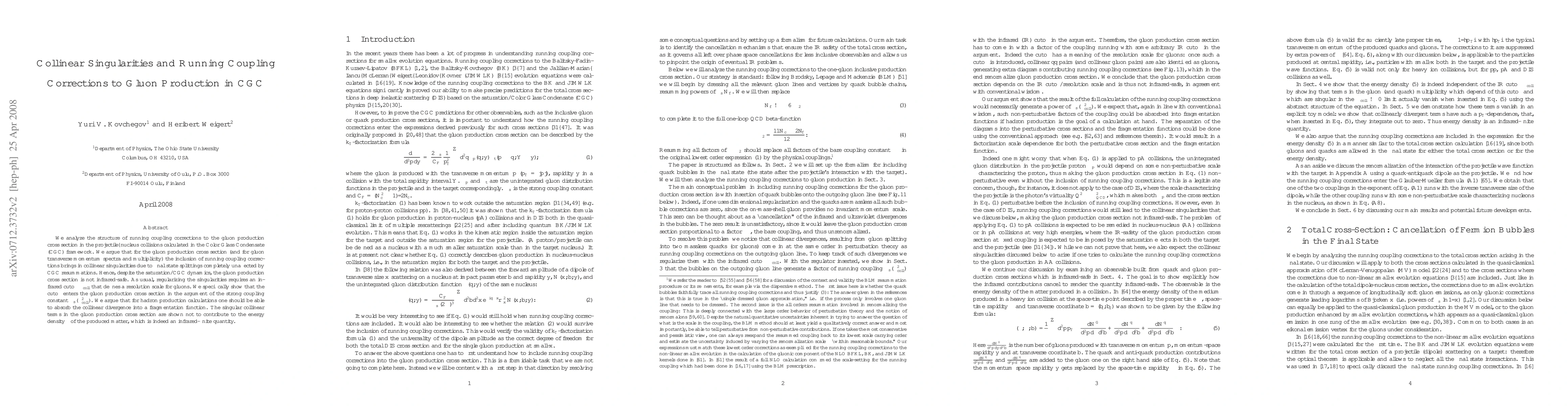 We analyze the structure of running coupling corrections to the gluon production cross section in the projectile-nucleus collisions calculated in the Color Glass Condensate (CGC) framework. We argue that for the gluon production cross section (and for gluon transverse momentum spectra and multiplicity) the inclusion of running coupling corrections brings in collinear singularities due to final state splittings completely unaffected by CGC resummations. Hence, despite the saturation/CGC dynamics, the gluon production cross section is not infrared-safe. As usual, regularizing the singularities requires an infrared cutoff Lambda_coll that defines a resolution scale for gluons. We specifically show that the cutoff enters the gluon production cross section in the argument of the strong coupling constant alpha_s(Lambda_coll^2). We argue that for hadron production calculations one should be able to absorb the collinear divergence into a fragmentation function. The singular collinear terms in the gluon production cross section are shown not to contribute to the energy density of the produced matter, which is indeed an infrared-finite quantity.