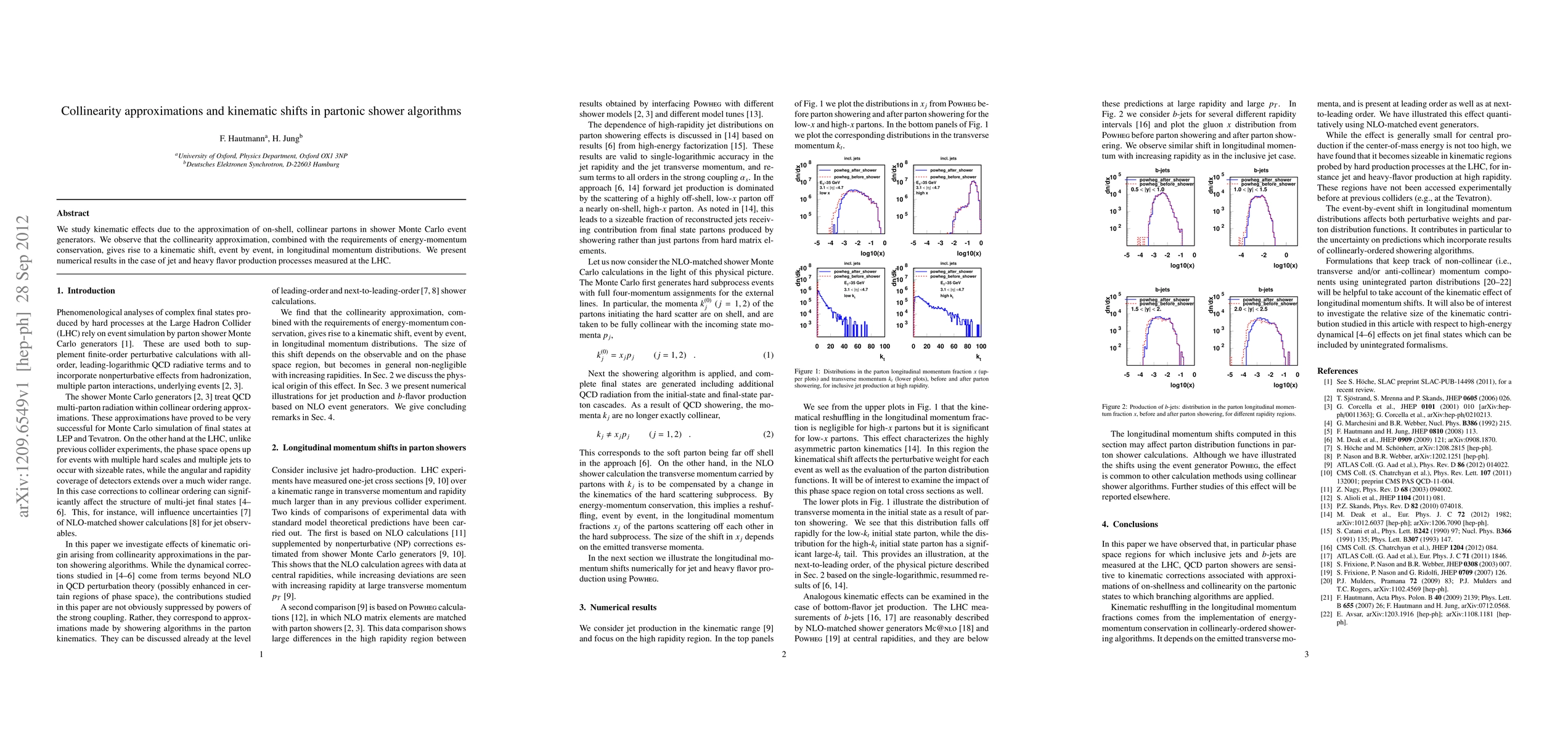 We study kinematic effects due to the approximation of on-shell, collinear partons in shower Monte Carlo event generators. We observe that the collinearity approximation, combined with the requirements of energy-momentum conservation, gives rise to a kinematic shift, event by event, in longitudinal momentum distributions. We present numerical results in the case of jet and heavy flavor production processes measured at the LHC.