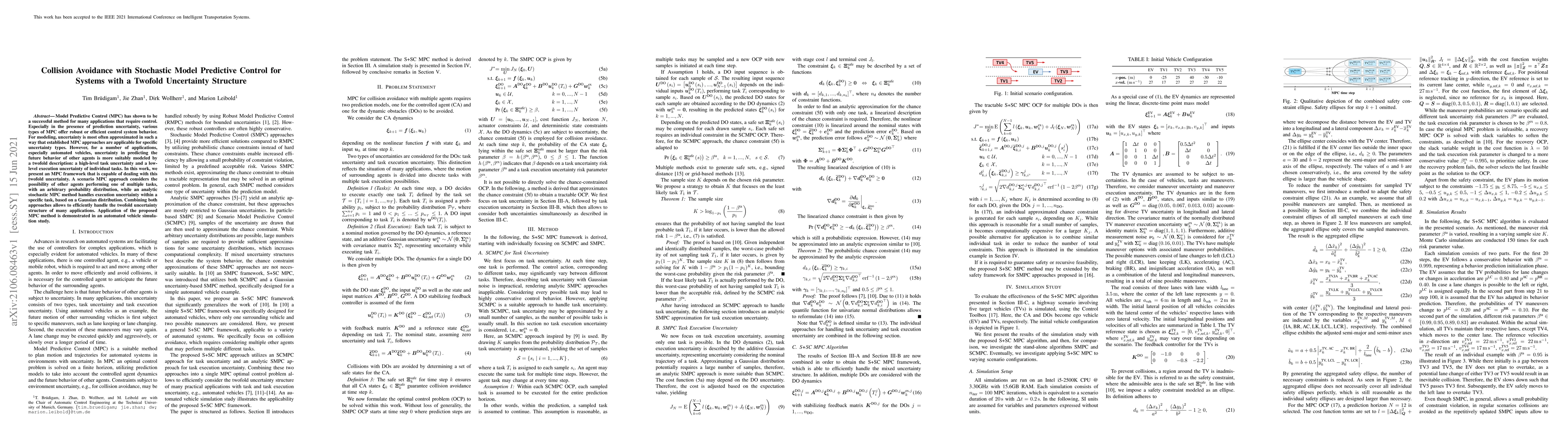 Model Predictive Control (MPC) has shown to be a successful method for many applications that require control. Especially in the presence of prediction uncertainty, various types of MPC offer robust or efficient control system behavior. For modeling, uncertainty is most often approximated in such a way that established MPC approaches are applicable for specific uncertainty types. However, for a number of applications, especially automated vehicles, uncertainty in predicting the future behavior of other agents is more suitably modeled by a twofold description: a high-level task uncertainty and a low-level execution uncertainty of individual tasks. In this work, we present an MPC framework that is capable of dealing with this twofold uncertainty. A scenario MPC approach considers the possibility of other agents performing one of multiple tasks, with an arbitrary probability distribution, while an analytic stochastic MPC method handles execution uncertainty within a specific task, based on a Gaussian distribution. Combining both approaches allows to efficiently handle the twofold uncertainty structure of many applications. Application of the proposed MPC method is demonstrated in an automated vehicle simulation study.