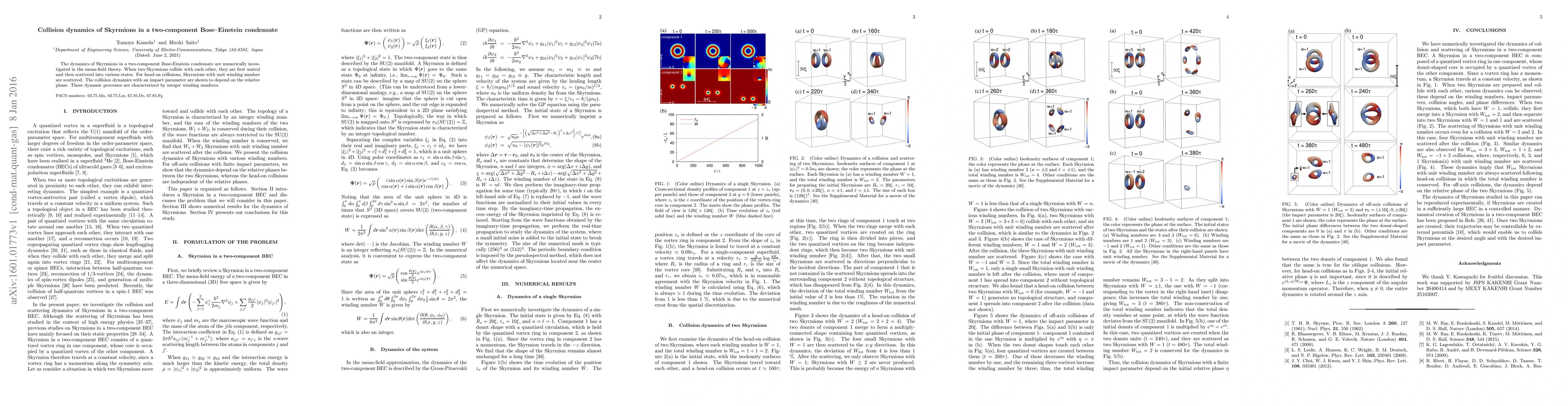 This research numerically investigates the collision dynamics of Skyrmions in a two-component Bose-Einstein condensate, revealing that Skyrmions unite and scatter into various states post-collision, with head-on collisions scattering unit winding number Skyrmions and collision dynamics influenced by relative phase and impact parameter.