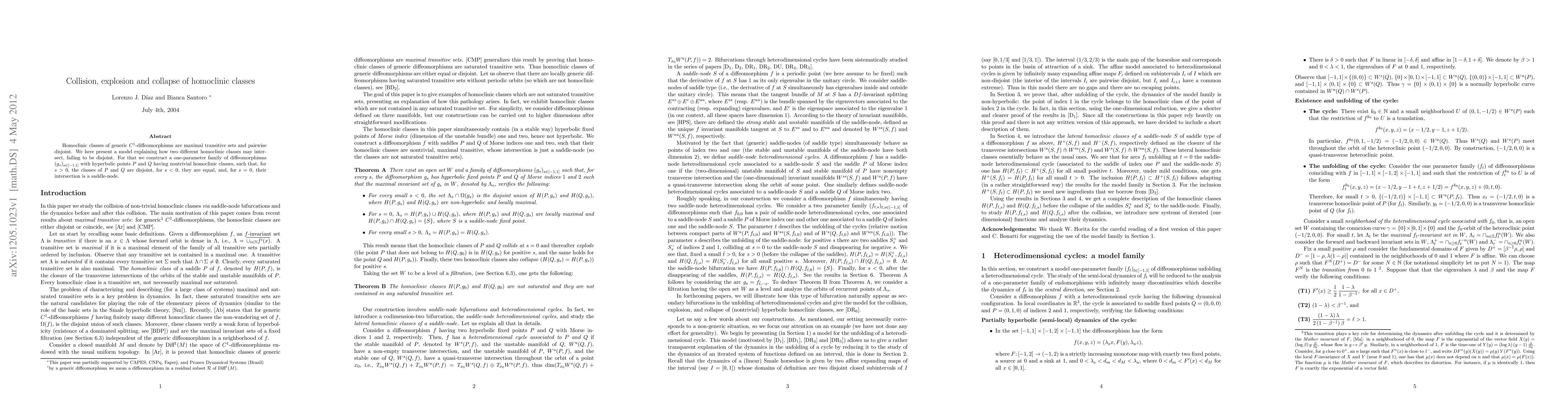 Homoclinic classes of generic $C^1$-diffeomorphisms are maximal transitive sets and pairwise disjoint. We here present a model explaining how two different homoclinic classes may intersect, failing to be disjoint. For that we construct a one-parameter family of diffeomorphisms $(g_s)_{s\in [-1,1]}$ with hyperbolic points $P$ and $Q$ having nontrivial homoclinic classes, such that, for $s>0$, the classes of $P$ and $Q$ are disjoint, for $s<0$, they are equal, and, for $s=0$, their intersection is a saddle-node.