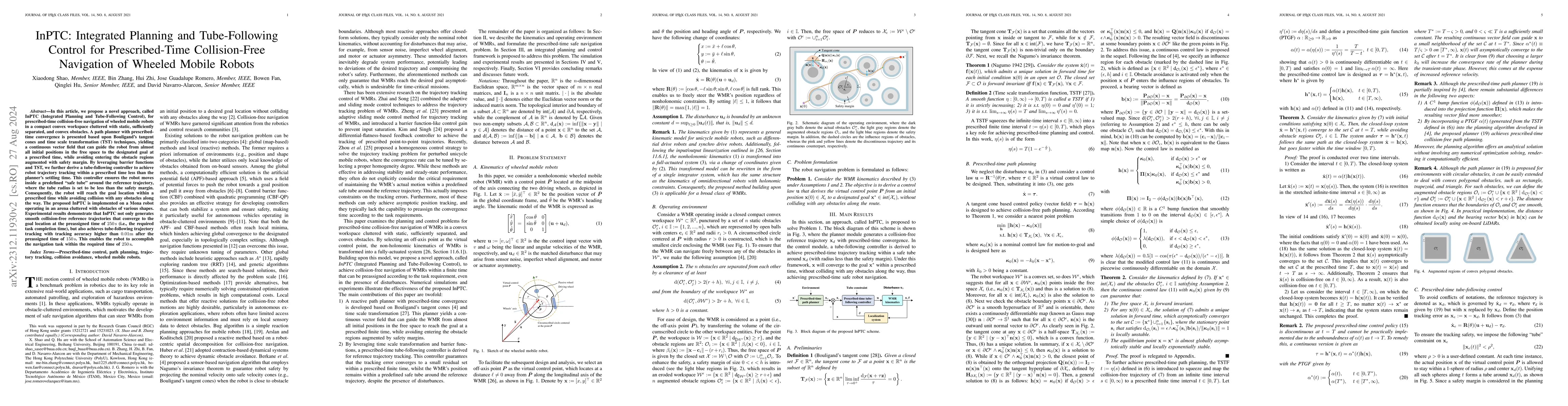 This paper proposes an integrated path planning and tube-following control approach for collision-free navigation of wheeled mobile robots in cluttered environments, using Bouligand's tangent cones and Nagumo's invariance theorem. The method ensures safe trajectory tracking and avoids collisions by maintaining the robot within a predefined "safe tube."