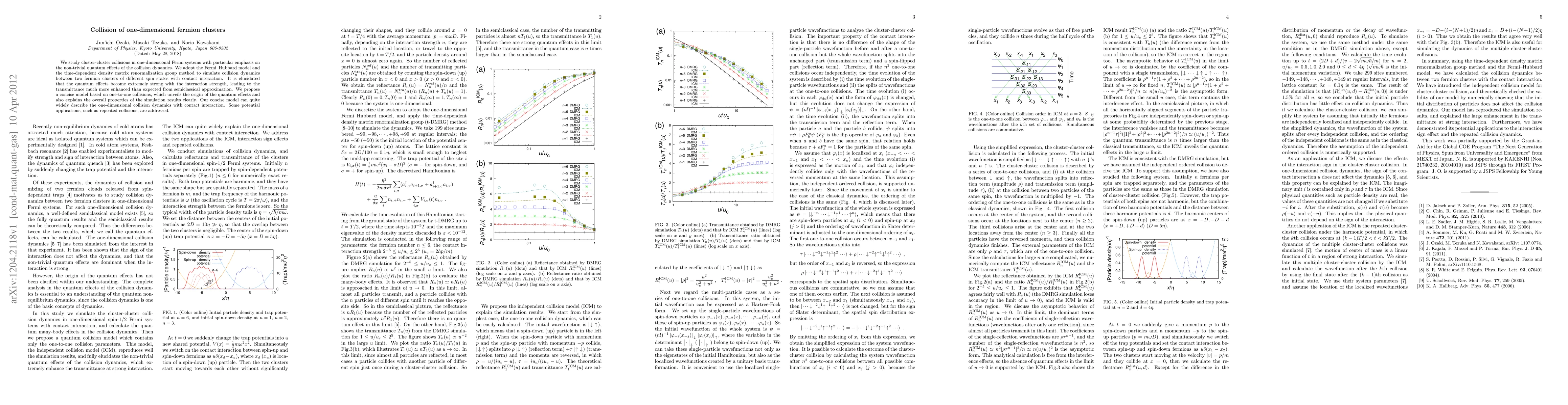 This paper investigates the collision dynamics between one-dimensional fermion clusters using the Fermi-Hubbard model and the time-dependent density matrix renormalization group method, revealing strong quantum effects that enhance transmittance beyond semiclassical predictions. A concise model based on one-to-one collisions explains these effects and broadly describes the collision dynamics.