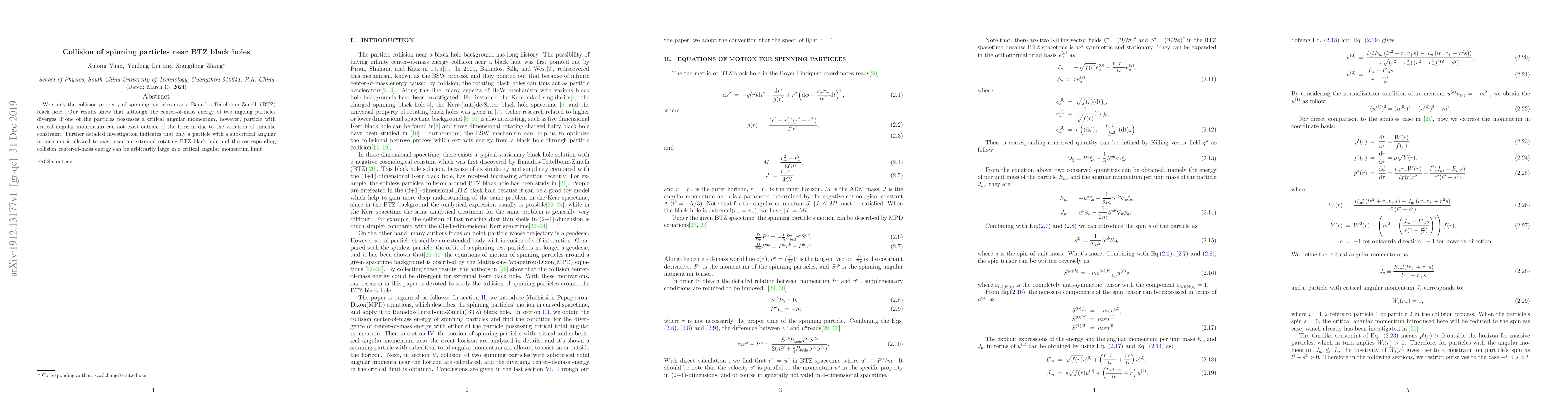 We study the collision property of spinning particles near a Ba\~nados-Teitelboim-Zanelli (BTZ) black hole. Our results show that although the center-of-mass energy of two ingoing particles diverges if one of the particles possesses a critical angular momentum, however, particle with critical angular momentum can not exist outside of the horizon due to the violation of timelike constraint. Further detailed investigation indicates that only the particle with a subcritical angular momentum is allowed to exist near an extremal rotating BTZ black hole and the corresponding collision center-of-mass energy can be arbitrarily large in a critical angular momentum limit.