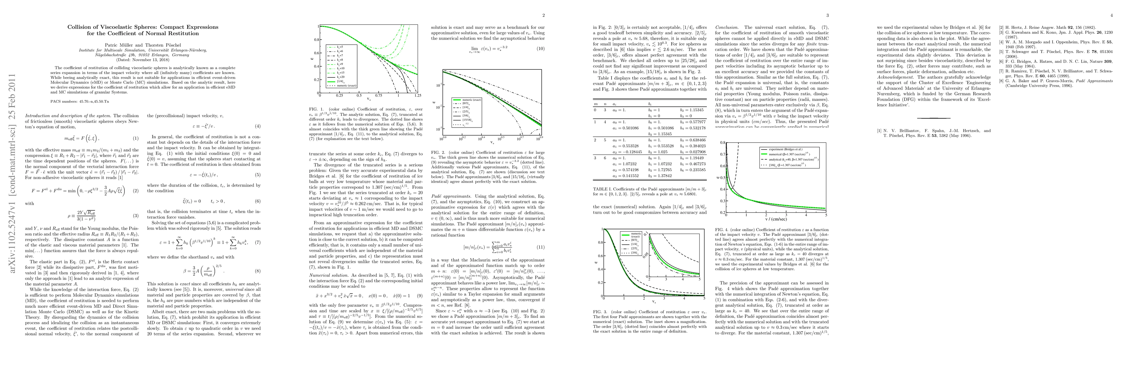 This research is novel because it presents a new method for calculating the coefficient of restitution that is based on a Pad’e expansion, which has not been previously used in this context