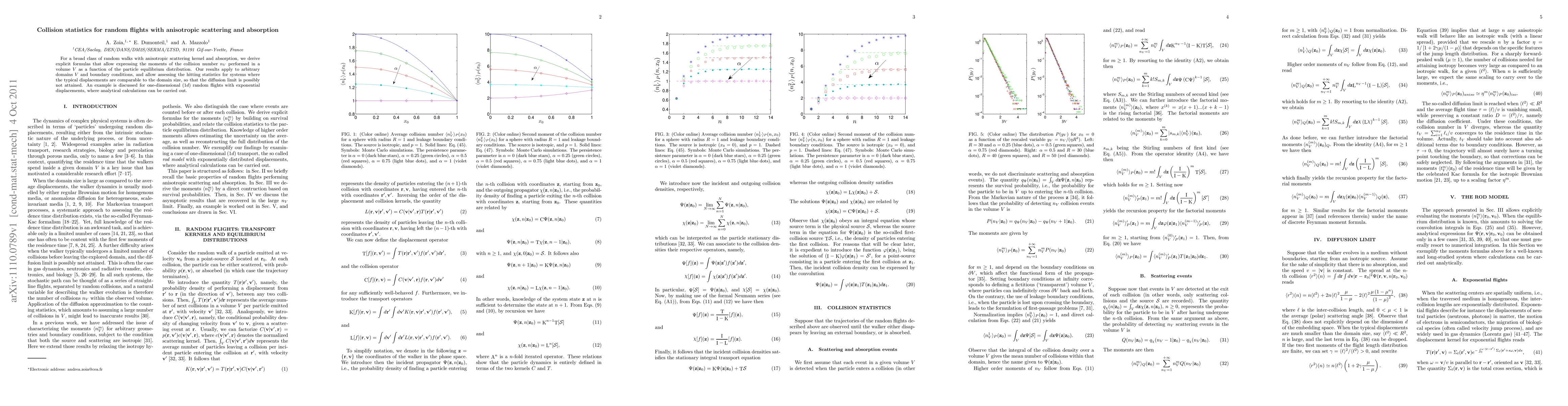 For a broad class of random walks with anisotropic scattering kernel and absorption, we derive explicit formulas that allow expressing the moments of the collision number $n_V$ performed in a volume $V$ as a function of the particle equilibrium distribution. Our results apply to arbitrary domains $V$ and boundary conditions, and allow assessing the hitting statistics for systems where the typical displacements are comparable to the domain size, so that the diffusion limit is possibly not attained. An example is discussed for one-dimensional (1d) random flights with exponential displacements, where analytical calculations can be carried out.