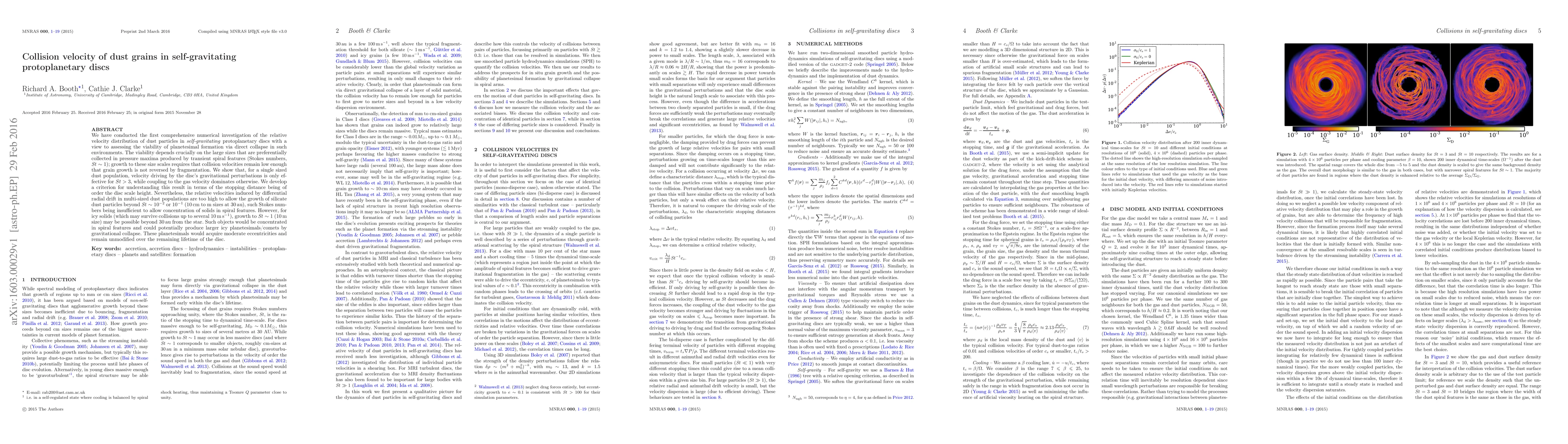 Dust grains in self-gravitating protoplanetary discs can grow to planetesimal sizes via direct collapse only if collisions occur at low velocities, allowing for the concentration of solids in spiral features.